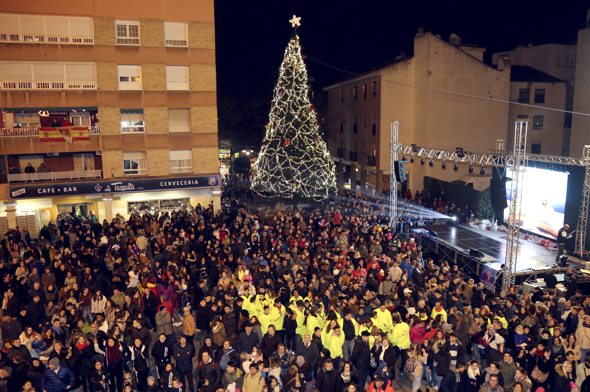 Mientras llegaban los Reyes Magos al final del recorrido, tuvo lugar el espectáculo de "Flash Mob" desde los balcones del Ayuntamiento, en el que participaron tanto los ciudadanos que previamente habían ensayado la coreografía a través de los vídeos difundidos, como los once bailarines de la Asociación Deportiva Aeróbica de Móstoles (ADAM).