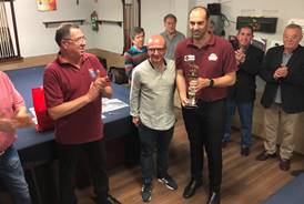 Imagen en alta resolución. Este enlace se abrirá mediante lightbox, puede haber un cambio de contextoEl Club de Billar Móstoles celebró durante la semana del 22 al 28 de abril los 20 años de historia del ranking de billar a 3 bandas Villa de Móstoles, convertido ya en el más añejo de la Comunidad de Madrid. El trofeo fue un gran éxito de participación, con más de 50 jugadores inscritos, y de público, con la sala llena hasta la bandera durante toda la fase final y una gran participación popular e institucional durante todo el torneo. Las semifinales y finales se jugaron el domingo 28 de abril por la mañana. Los jugadores clasificados para este último día tuvieron en común su juventud, confirmando que el relevo generacional está asegurado en nuestra comunidad. Los broches de oro a la semana de competición fueron la participación de la campeona de España, Estela Cardoso, que alcanzó unos meritorios cuartos de final, el gran desempeño de los jugadores locales con hasta 8 jugadores clasificados para octavos y el gran éxito final para el campeón local, Rubén Legazpi, que se impuso en la final, con un fantástico promedio del 2.222, a Rubén Fernández.