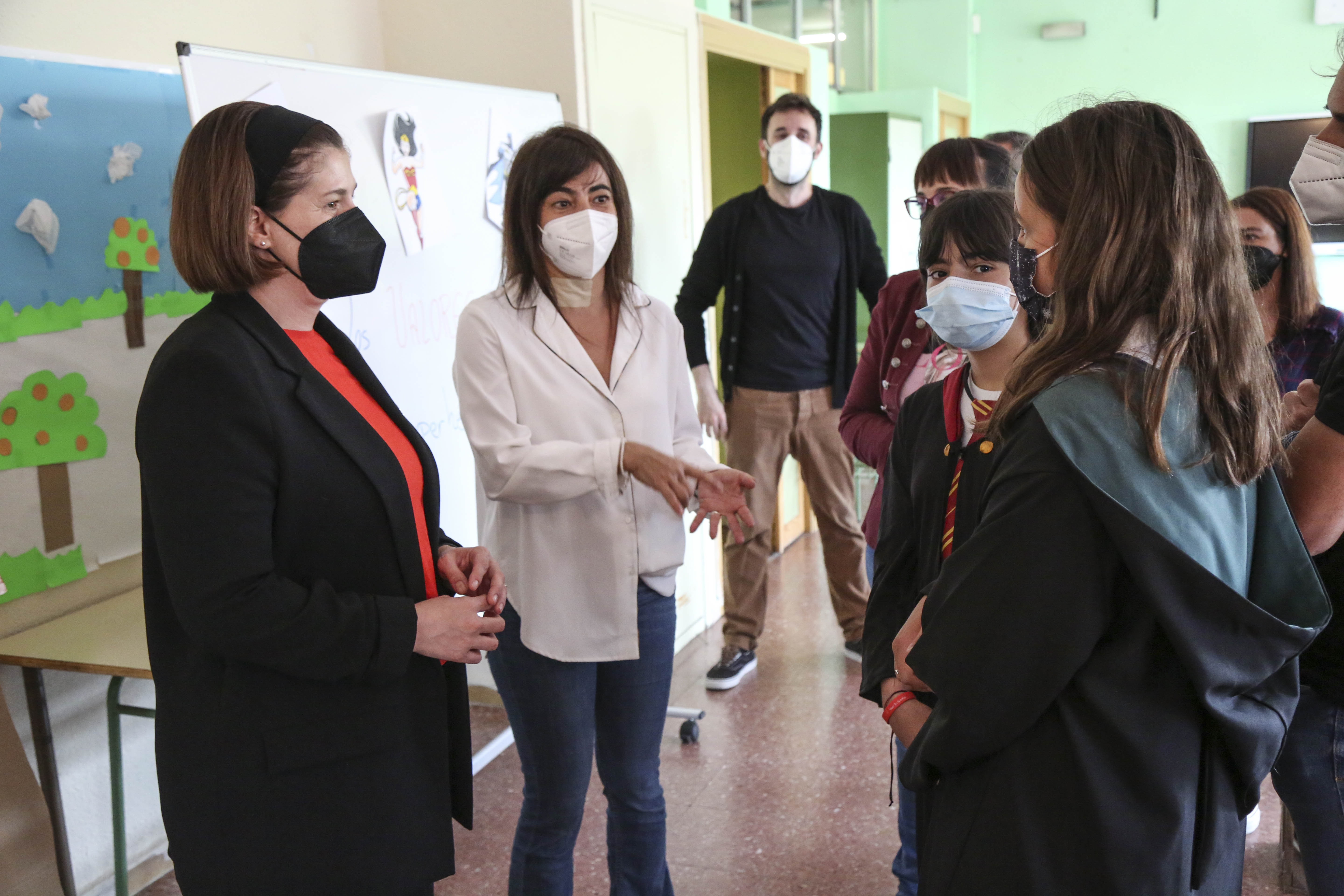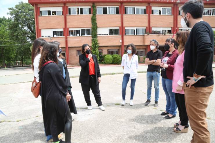 La Alcaldesa de Móstoles, Noelia Posse, acompañada por la Concejala de Educación y Juventud, Nati Gómez, y la Concejala de Presidencia y Desarrollo Urbano, Marisa Ruiz, ha felicitado esta mañana a los profesores y alumnos por su proyecto y por haber quedado entre los diez primeros.