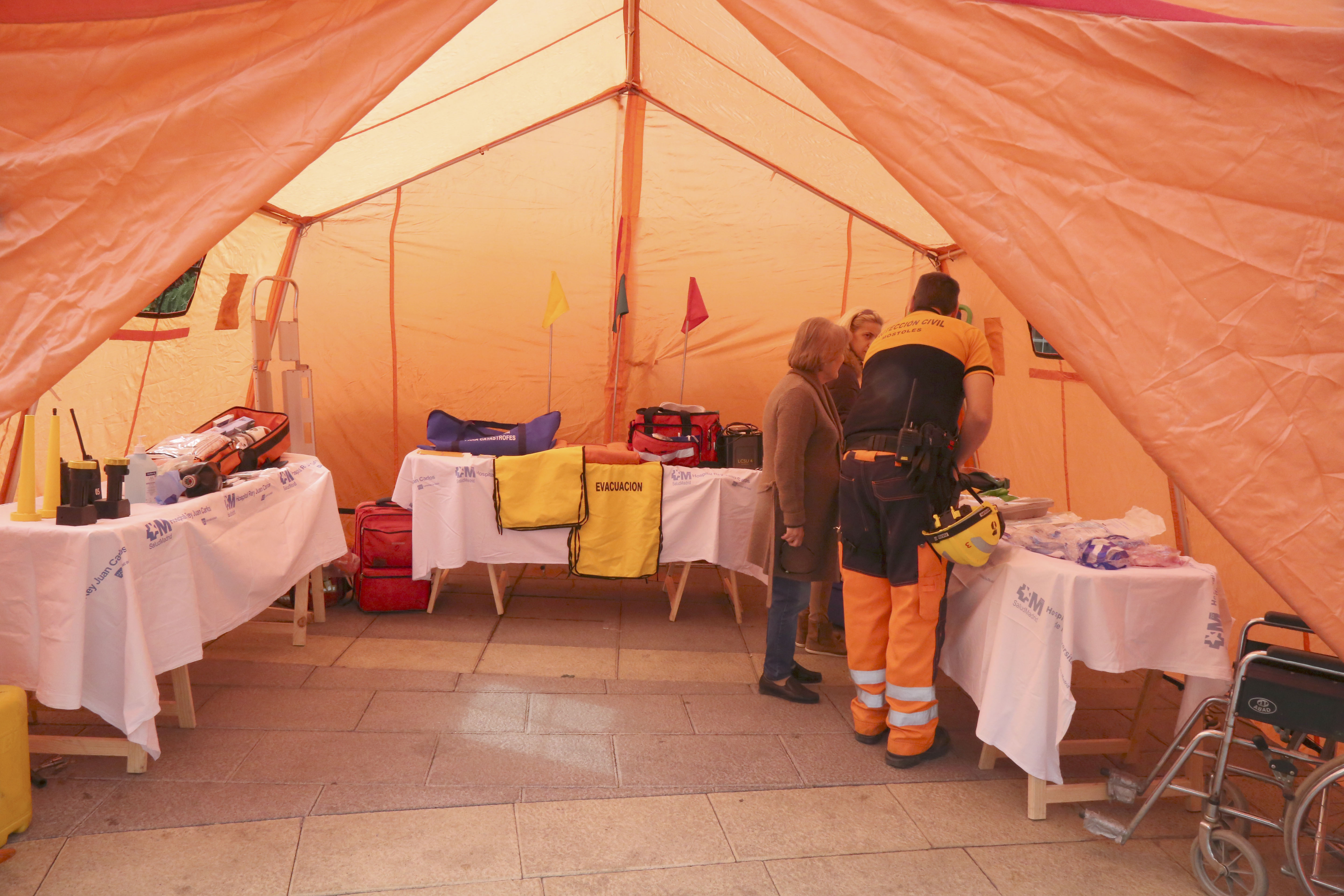 Con motivo del Día Internacional de la "Resucitación Cardiorrespiratoria (RCP)" y bajo el lema "Tus manos pueden salvar más vidas", la Concejalía de Presidencia, Seguridad Ciudadana y Movilidad, a través de la Agrupación de Protección Civil Móstoles, ha instalado en la Plaza de España tres hospitales de Campaña en los que se enseña a los vecinos a responder ante una situación de parada cardiorrespiratoria. El concejal responsable del Área, Roberto Sánchez, ha presenciado junto a vecinos la realización de estas útiles maniobras.