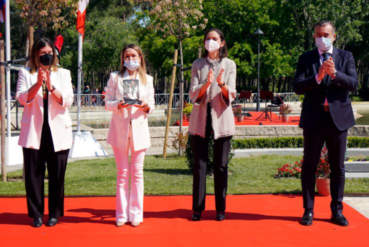 La Ministra de Industria, Comercio y Turismo, ha querido también agradecer a los premiados en nombre del Gobierno de España el haberse colocado "en primera línea para hacer frente a una pandemia que cada día estamos más cerca de vencer. gracias al esfuerzo de toda la sociedad española y gracias a la llegada de las vacunas"- ha asegurado. Ha remarcado además el trabajo realizado por el Gobierno Local, el área de festejos, y por todos los vecinos para conseguir que las Fiestas del Dos de Mayo sean de Interés Turístico Nacional, un título que ha sido otorgado bajo su gestión como Ministra.