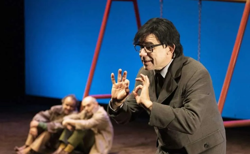 Dos hombres esperan junto a un columpio la llegada de Samuel para celebrar una fiesta. Pasa por allí el Señor Profesor, les da la lección y se marcha. El tiempo pasa, no deja de pasar, no termina nunca de pasar, nunca… Jugando, esperan otro día más. ¿Y si hoy ya fuera mañana?