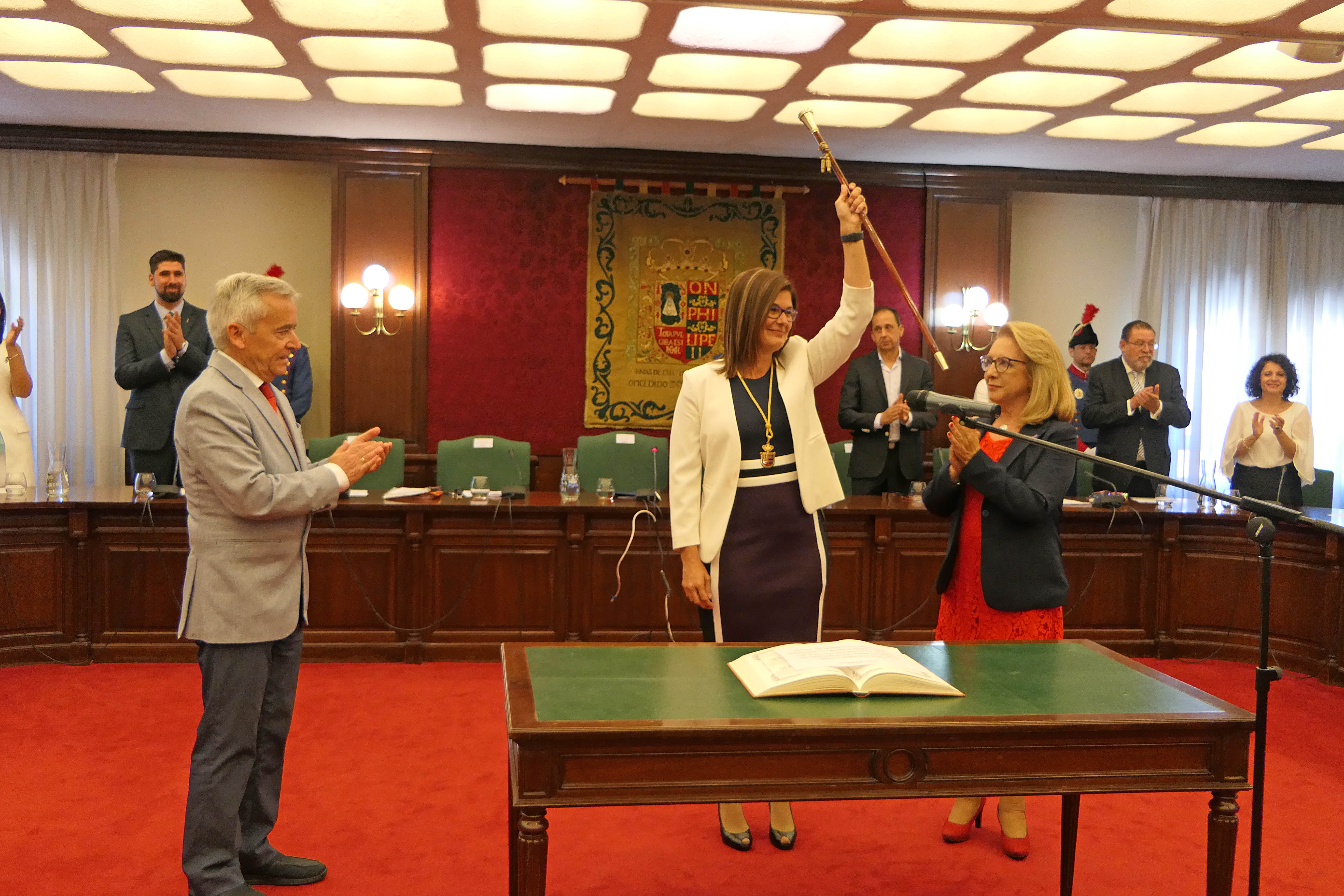 La ceremonia de nombramiento se ha desarrollado en una sesión que ha contado con una amplia participación ciudadana, dentro y fuera de un Salón de Plenos abarrotado de vecinos y familiares, que aplaudió la entrega del bastón de mando a la regidora.