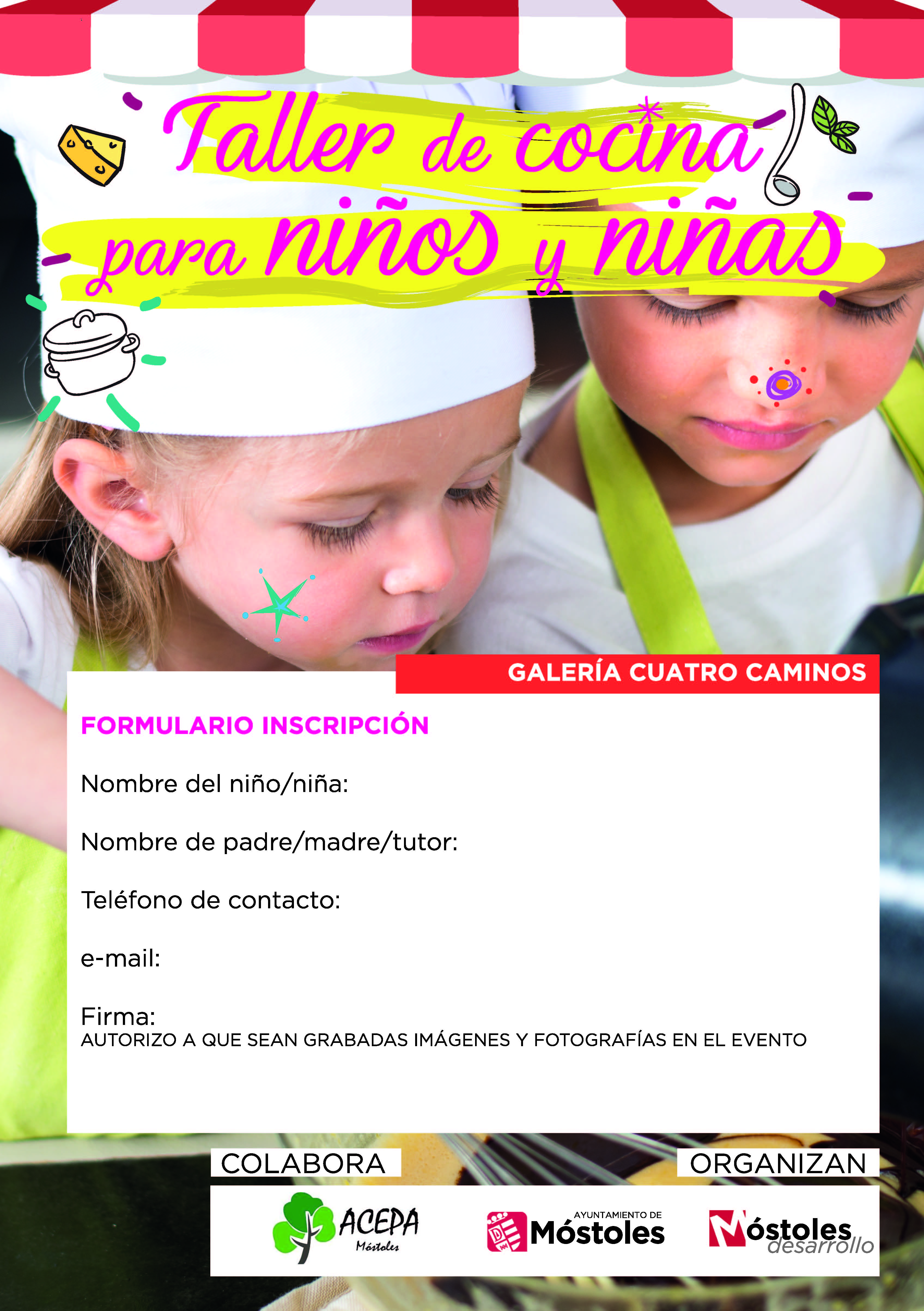 En cada taller se enseñará a los niños y niñas participantes a comprar en los puestos del mercado los productos del menú saludable, a confeccionar sus propios platos, a la vez que, a través de juegos y anécdotas, se les inculcará hábitos de consumo y alimentación saludables. Las plazas para poder participar en los Talleres de Cocina Saludable son limitadas. Todas las familias que quieran formar parte de esta iniciativa pionera en la localidad pueden rellenar su solicitud en cualquiera de las galerías y mercados participantes, o bien llamando al teléfono de Móstoles Desarrollo 91.685.30.90 y descargándose también el formulario de inscripción al taller de la galería que más le interese, para enviarlo por mail a info@mostolesdesarrollo.es