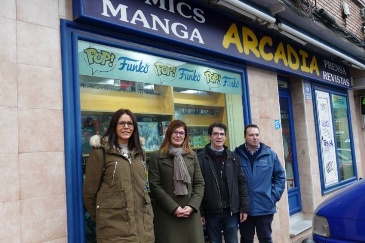 Visita a la libreria ARCADIA 1Imagen en alta resolución. Este enlace se abrirá mediante lightbox, puede haber un cambio de contextoVisita a la libreria ARCADIA 1La Alcaldesa Noelia Posse, junto a la Concejala de Presidencia, Rebeca Prieto, hizo ayer una visita a la tienda Arcadia Cómics Móstoles, enmarcada en los encuentros que está manteniendo con los comerciantes locales para mostrarles su apoyo y conocer sus inquietudes de primera mano.