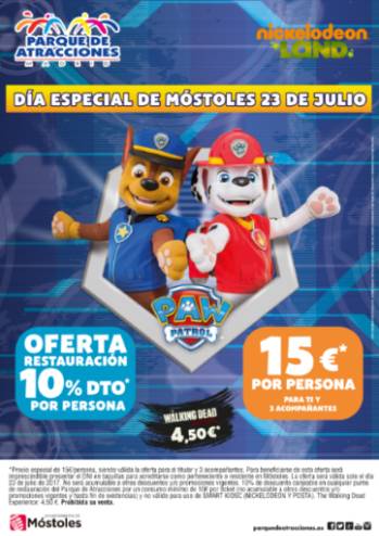 Prensa PAW A3Imagen en alta resolución. Este enlace se abrirá mediante lightbox, puede haber un cambio de contextoPrensa PAW A3Un año más el Ayuntamiento de Móstoles, a través de la Concejalía de Juventud y Participación Ciudadana, ha conseguido un nuevo `Día Especial de Móstoles´ en el Parque de Atracciones de Madrid. La cita será el próximo 23 de julio, día en que los vecinos podrán beneficiarse de importantes descuentos con tan solo acreditar su residencia.