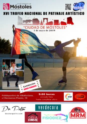 Imagen en alta resolución. Este enlace se abrirá mediante lightbox, puede haber un cambio de contextoEl próximo 1 de mayo de 2019,en el Polideportivo de Villafontana, el Club Patinaje Artístico Móstoles organizará, con la colaboración de la concejalía de Deportes de Móstoles y diversos patrocinadores privados, el XVI Trofeo Nacional "Ciudad de Móstoles". La jornada contará con la exhibición de Jorge Canales: Campeón de España 2016 Juvenil; Subcampeón de España 2017 Juvenil; Subcampeón de España 2018 Junior; Bronce Europeo Juvenil 2017; Bronce Europeo Junior 2018.