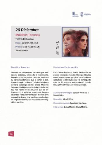 La obra "Malditos tacones", protagonizada por Luisa Martín y Olivia Molina y dirigida por Magüi Mira, destaca en la agenda cultural de esta semana, diseñada por el Ayuntamiento de Móstoles, a través de la Concejalía de Cultura, Desarrollo y Promoción Turística, que también ofrece música, teatro y espectáculos para todos los públicos.