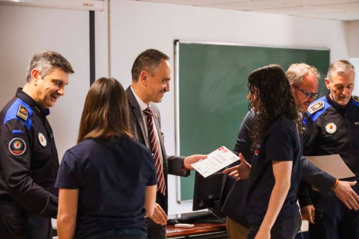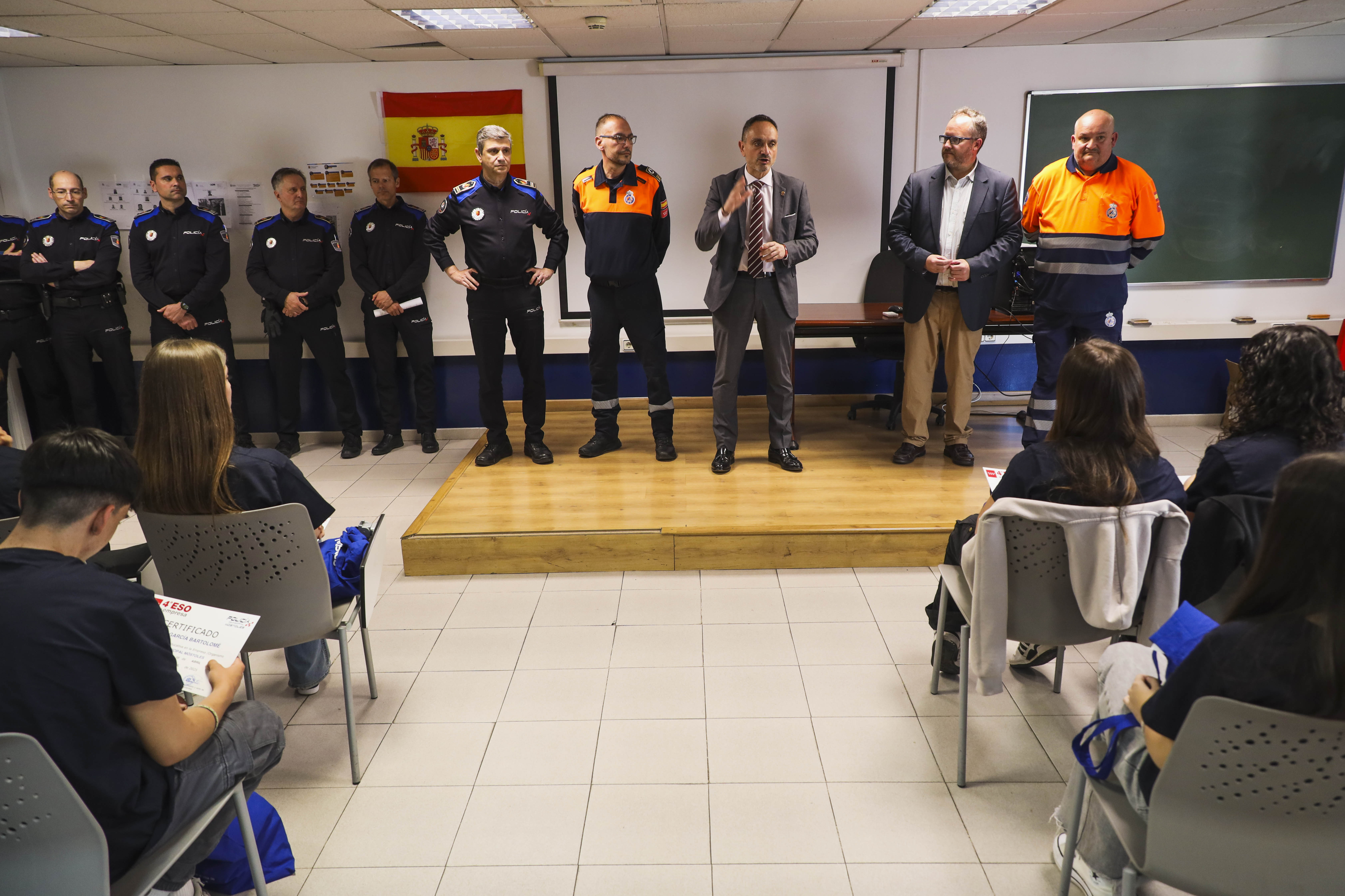 También han participado en la entrega de diplomas el comisario de la Policía Municipal, Juan Manuel Arribas, y el jefe de la Agrupación de Protección Civil de Móstoles, Carlos Herrador.
