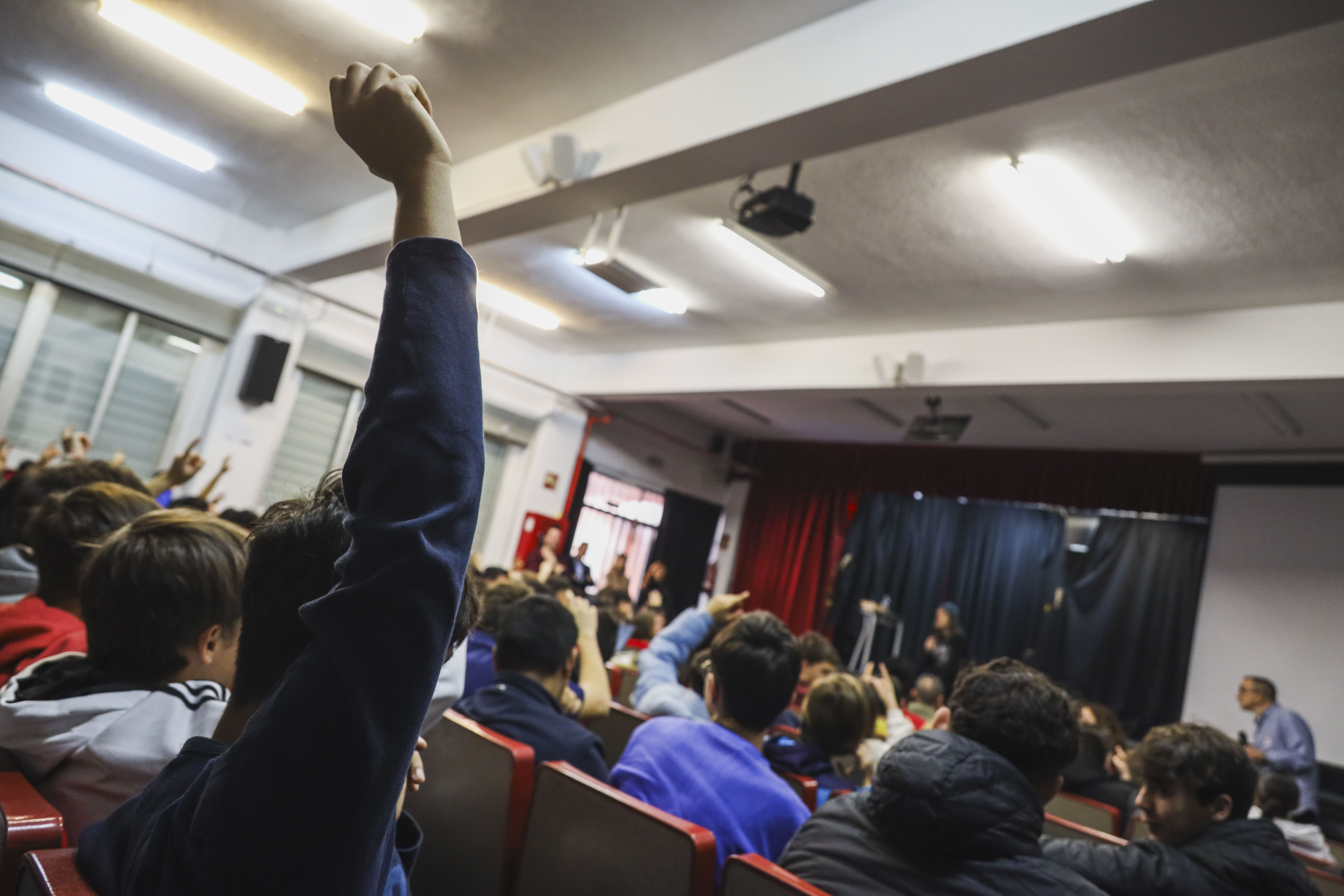 El alcalde de Móstoles asiste a un coloquio sobre Ciberseguridad con alumnos del Bachillerato de Investigación del IES Juan Gris
