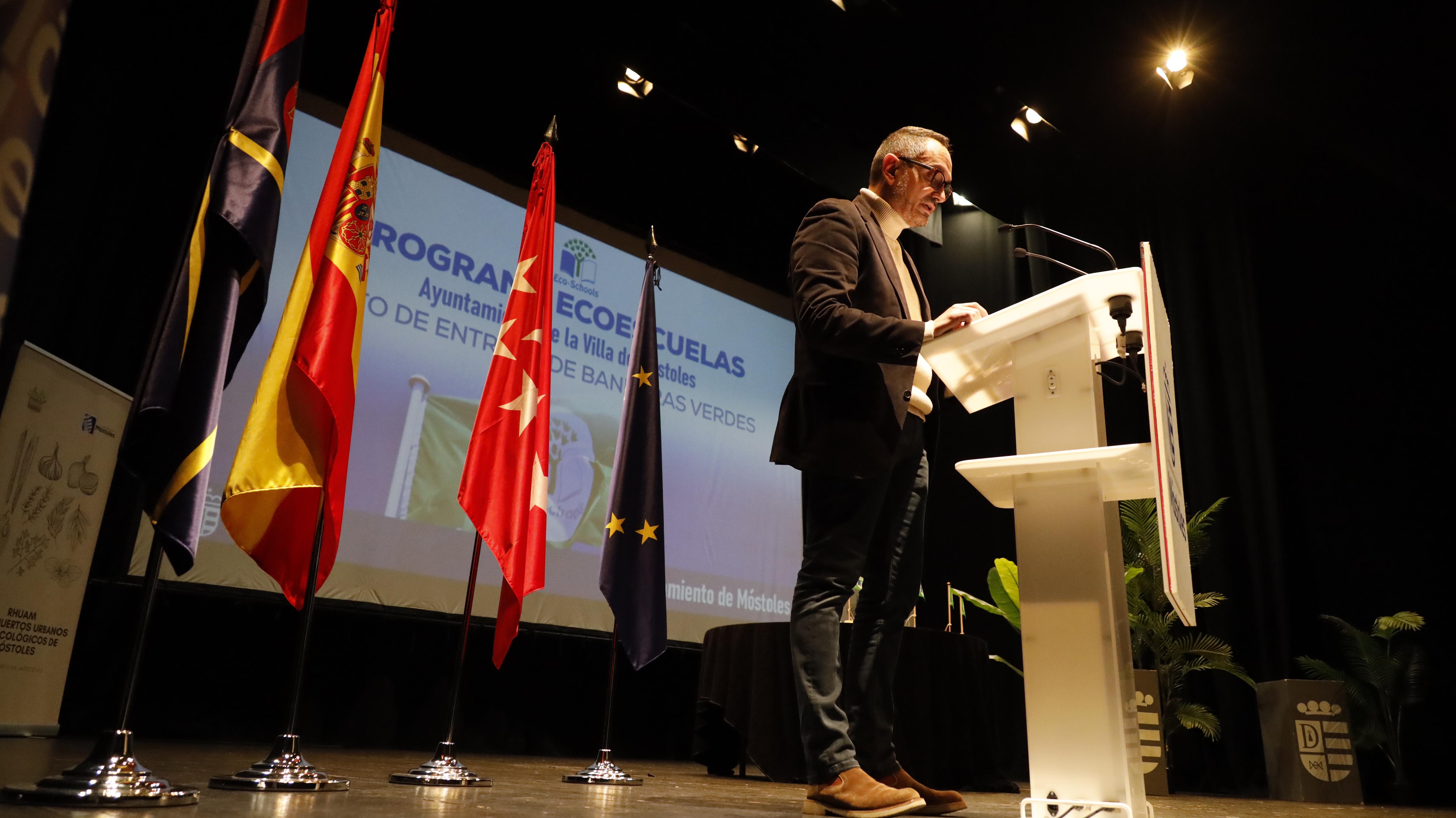 - El Alcalde de Móstoles, Manuel Bautista, hizo entrega de las Banderas Verdes, icono del programa internacional Ecoescuelas, del que forman parte estos centros educativos galardonados.