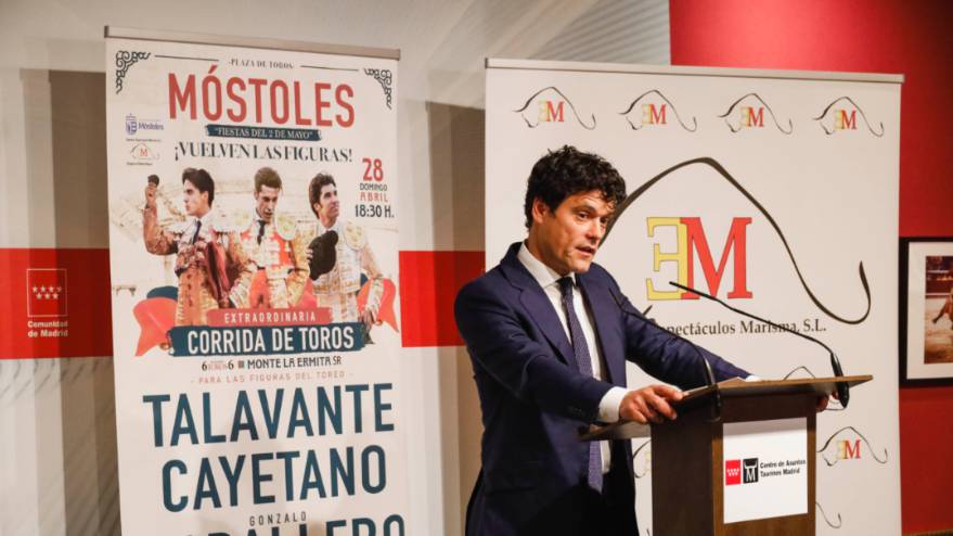 - La corrida de toros, protagonizada por los diestros Alejandro Talavante, Cayetano Rivera y Gonzalo Caballero, se celebrará el próximo domingo 28 de abril, a las 18:30 h, en la Plaza de Toros de Móstoles.