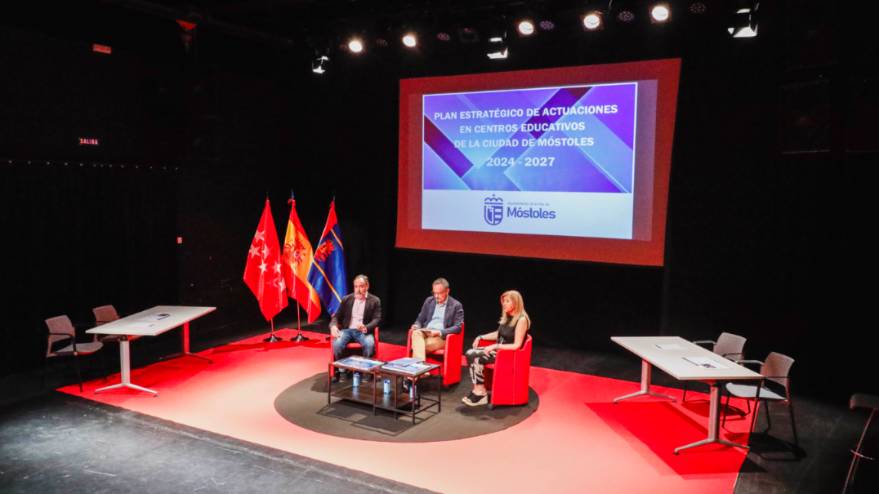 El Alcalde de Móstoles, Manuel Bautista, junto a la concejal de Educación y Festejos, Cristina Molina, y el concejal de Urbanismo, Vivienda, Patrimonio y Mantenimiento de la Ciudad, Sergio Mª Soler, ha presentado el Plan Estratégico de Actuaciones en centros educativos de la ciudad de Móstoles 2024-2027, que incluyen escuelas infantiles y casas de niños.