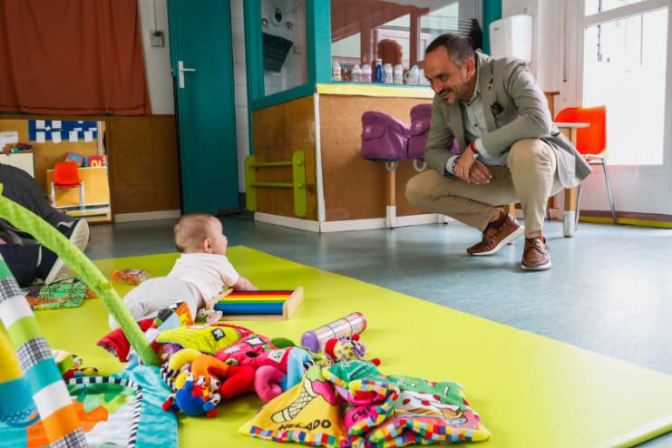 En la Escuela Infantil El Soto, el Primer Edil se ha interesado por las circunstancias en las que se encuentra el centro y los niños que asisten a él, especialmente durante este período de adaptación. A su llegada al centro ha sido recibido por su directora, Soledad Arias.