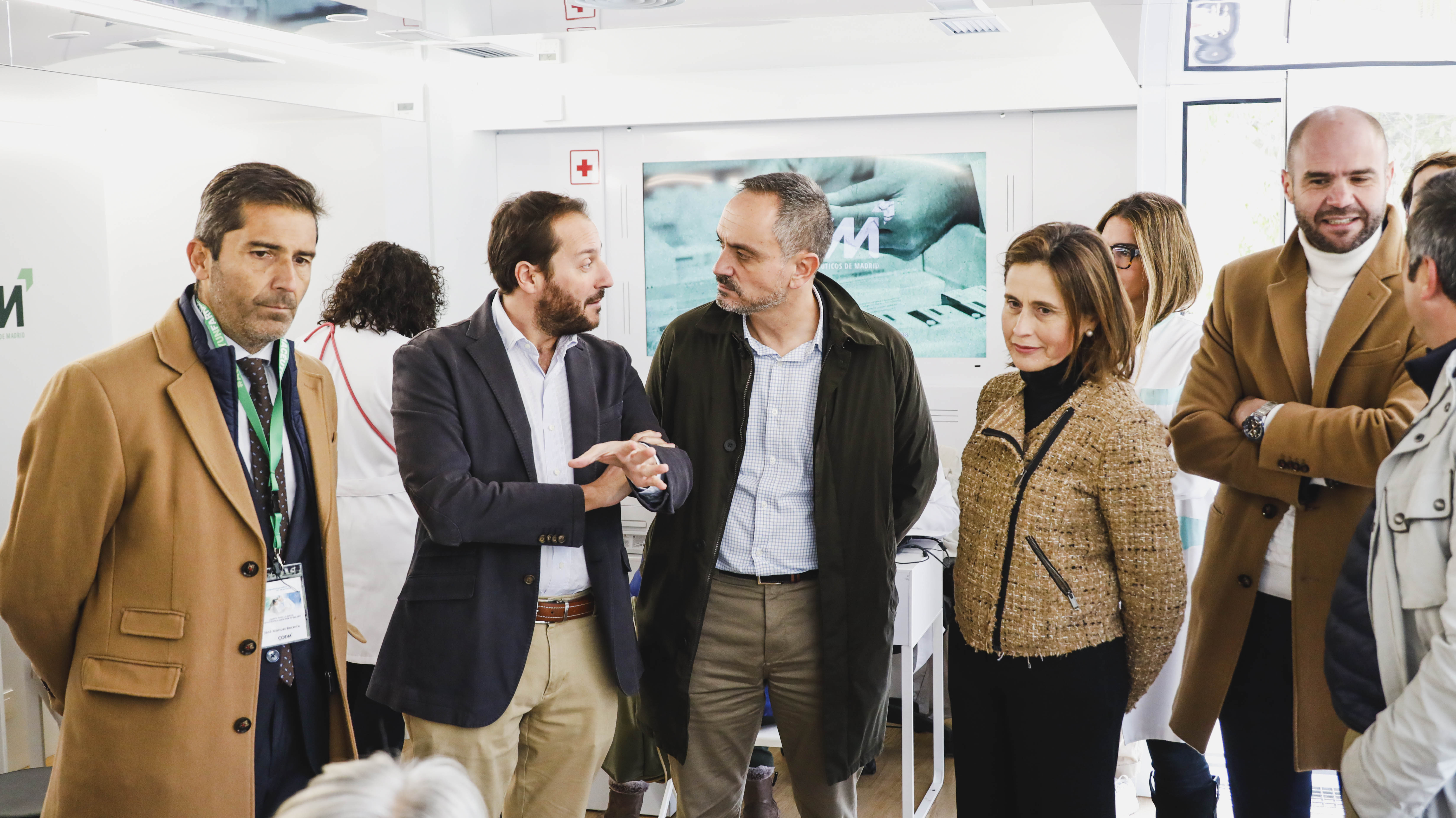 El alcalde visita la unidad móvil del Colegio de Farmacéuticos instalada en Móstoles