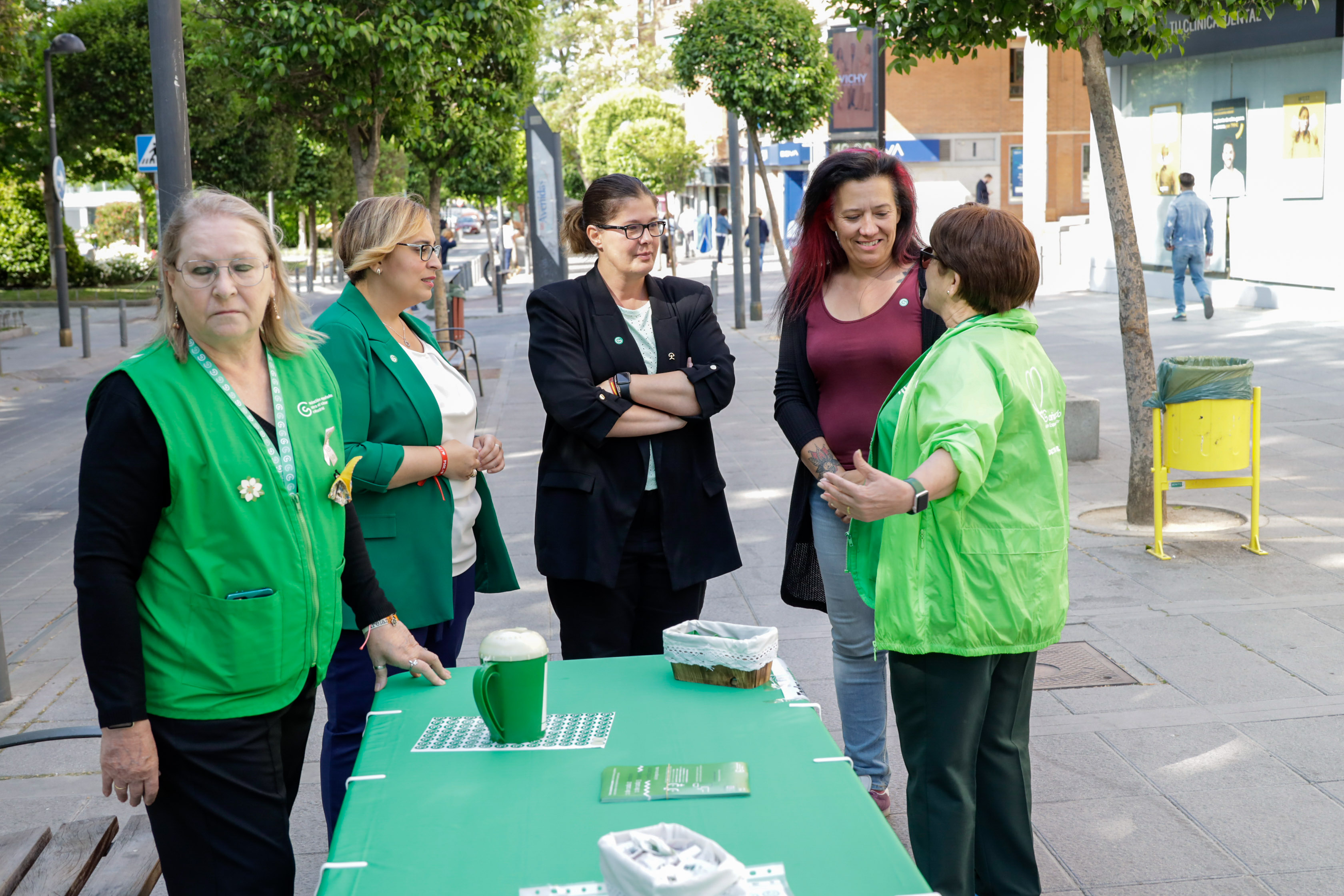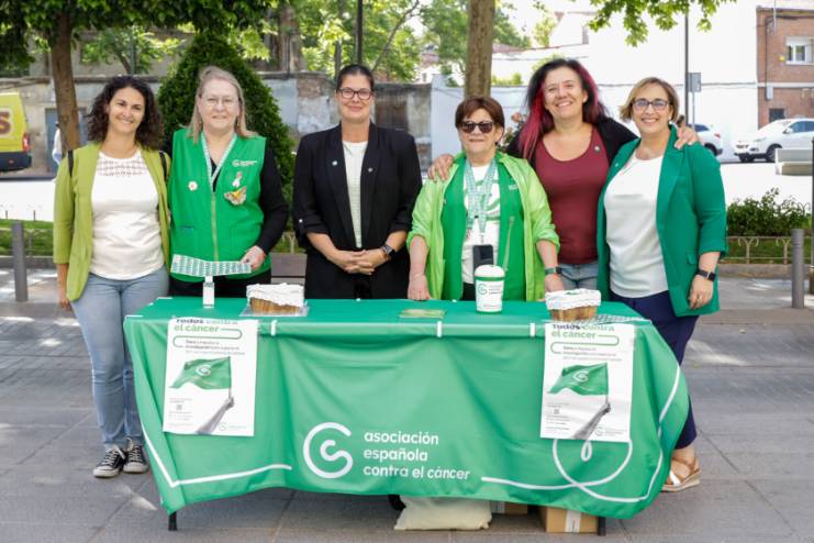 La Alcaldesa visita la mesa de cuestación de la AECC de Móstoles