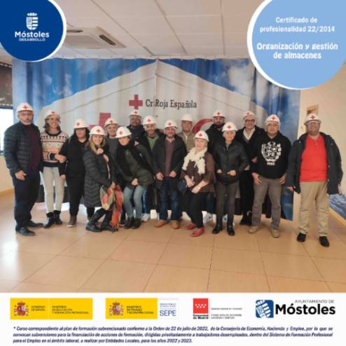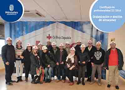 Alumnos del certificado de profesionalidad "Organización y gestión de almacenes", que imparte Móstoles Desarrollo, han visitado hoy el centro logístico de abastecimiento que Cruz Roja tiene en Leganés.