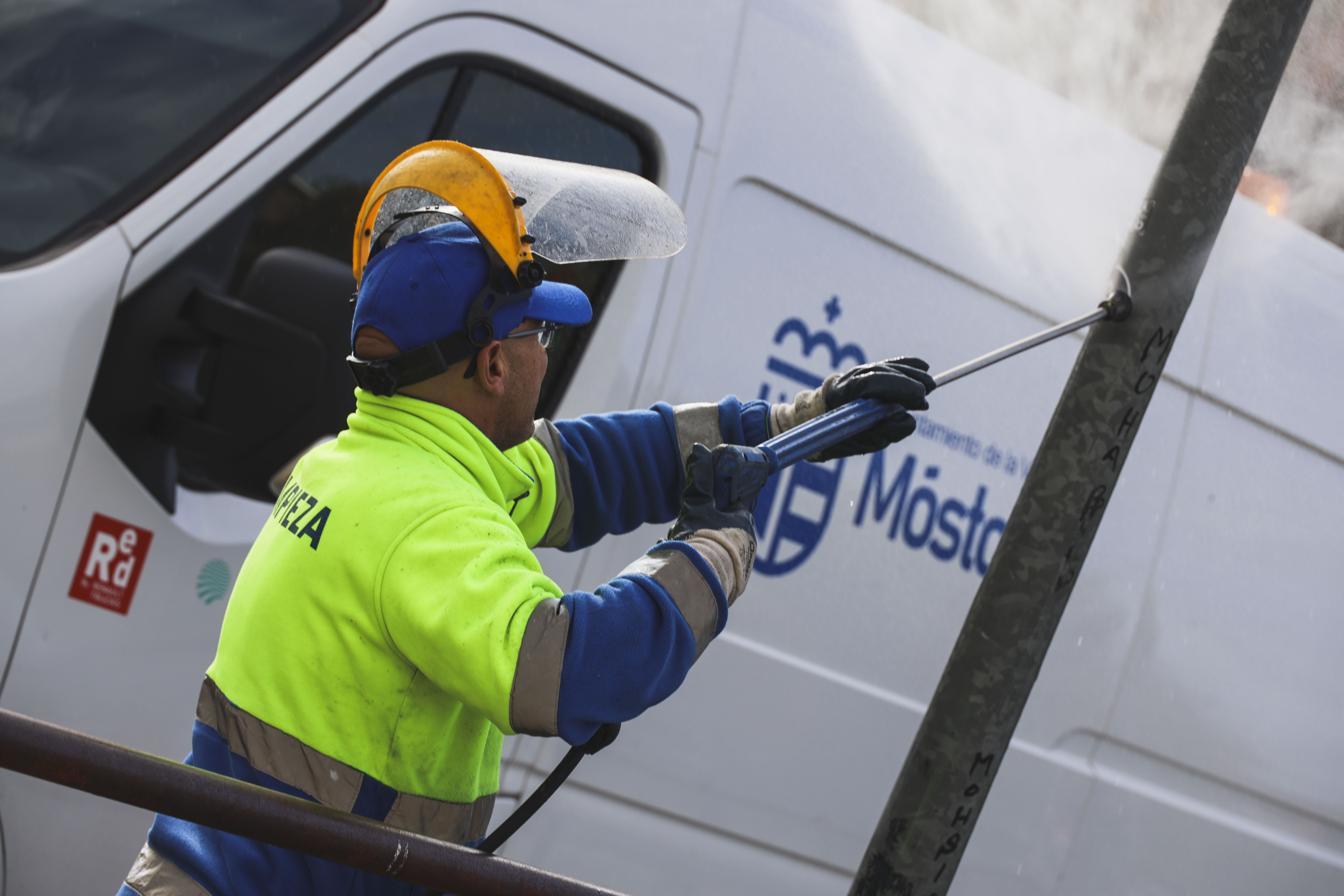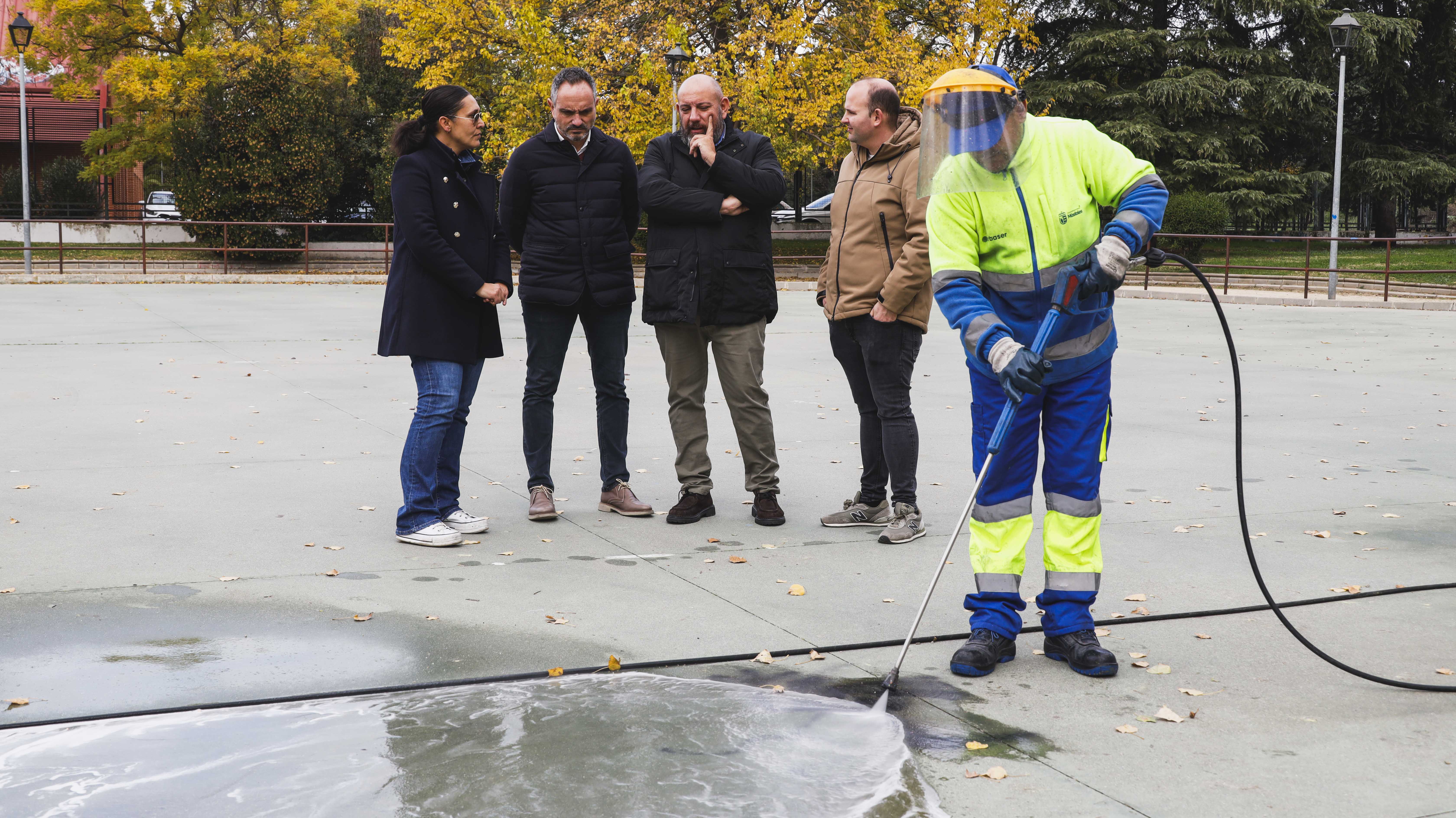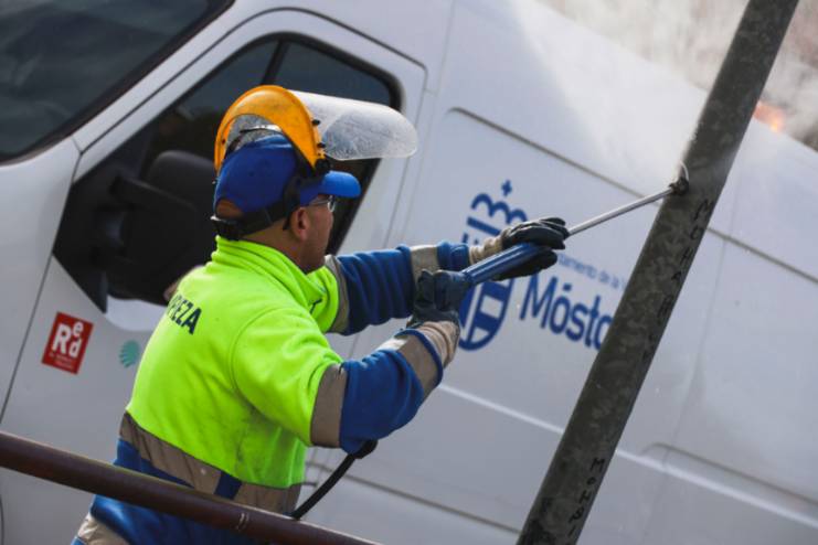 El plan de limpieza del Ayuntamiento de Móstoles contempla, además, otras actuaciones como desbroce, limpieza mediante barrido manual y mecánico, limpieza de contenedores, enlucido y limpieza de mobiliario urbano como bancos y papeleras y baldeo de aceras y calzadas mediante equipo mixto (lavacera, baldeadora e hidropresión).