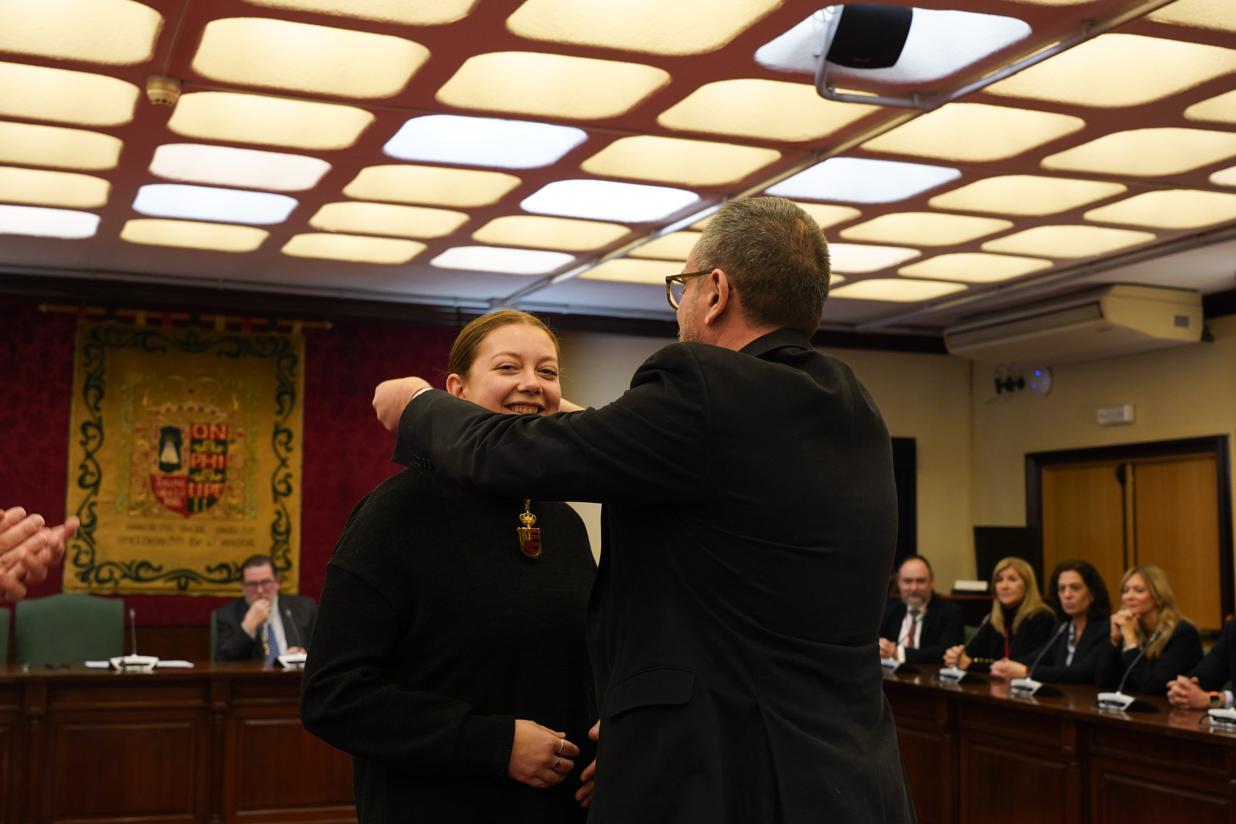 La Corporación Municipal cumple con la entrega de esta Medalla de Oro, acordado en el Pleno de 28 de abril de 2022, que se pospuso por motivos personales de la galardonada.