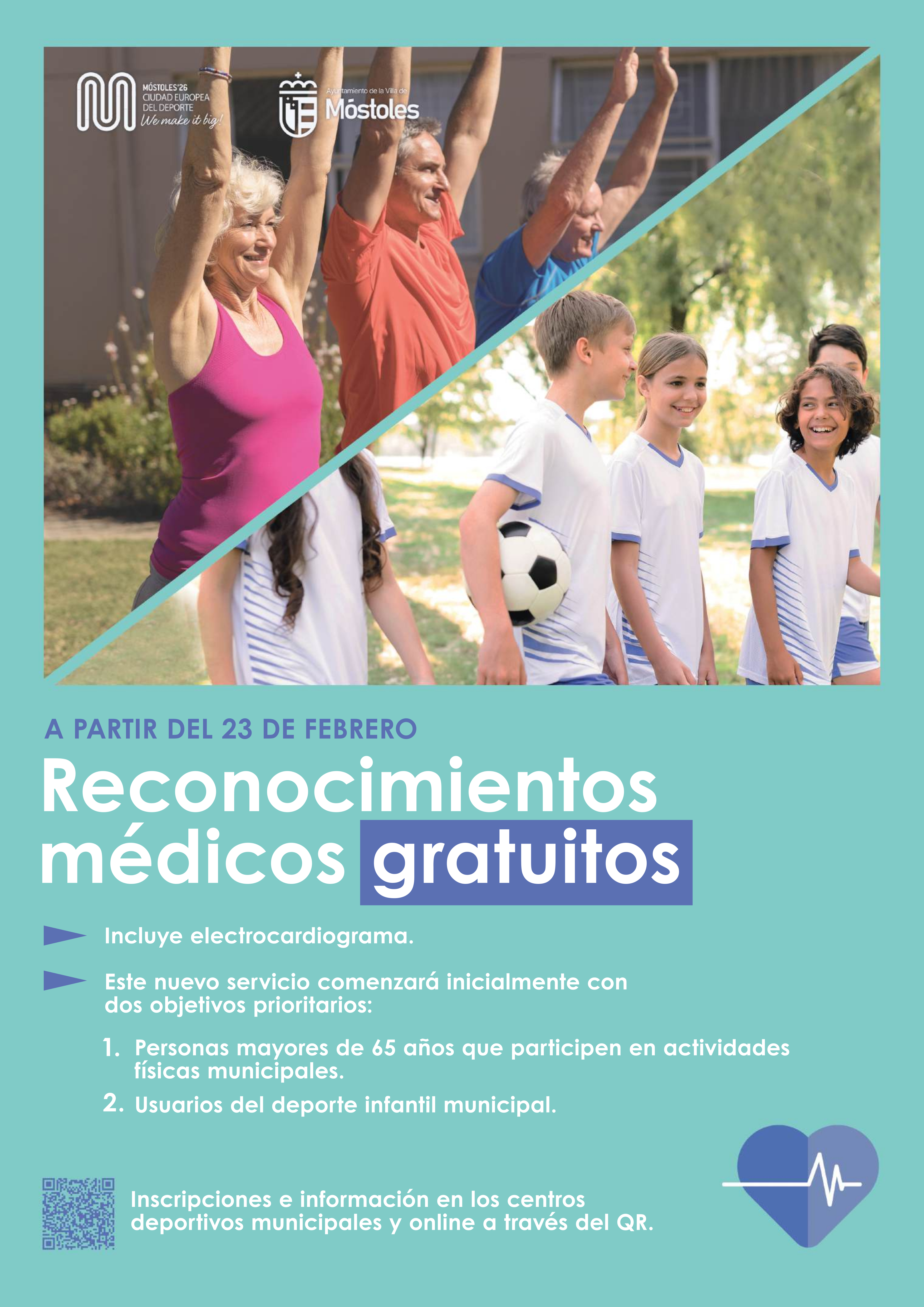 El Ayuntamiento de Móstoles, a través de la Concejalía de Deportes y Sanidad, implantará un programa de reconocimientos médicos deportivos avanzados y gratuitos con electrocardiograma dirigido a los usuarios de la oferta deportiva municipal.
