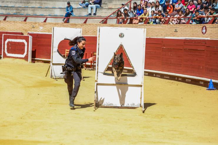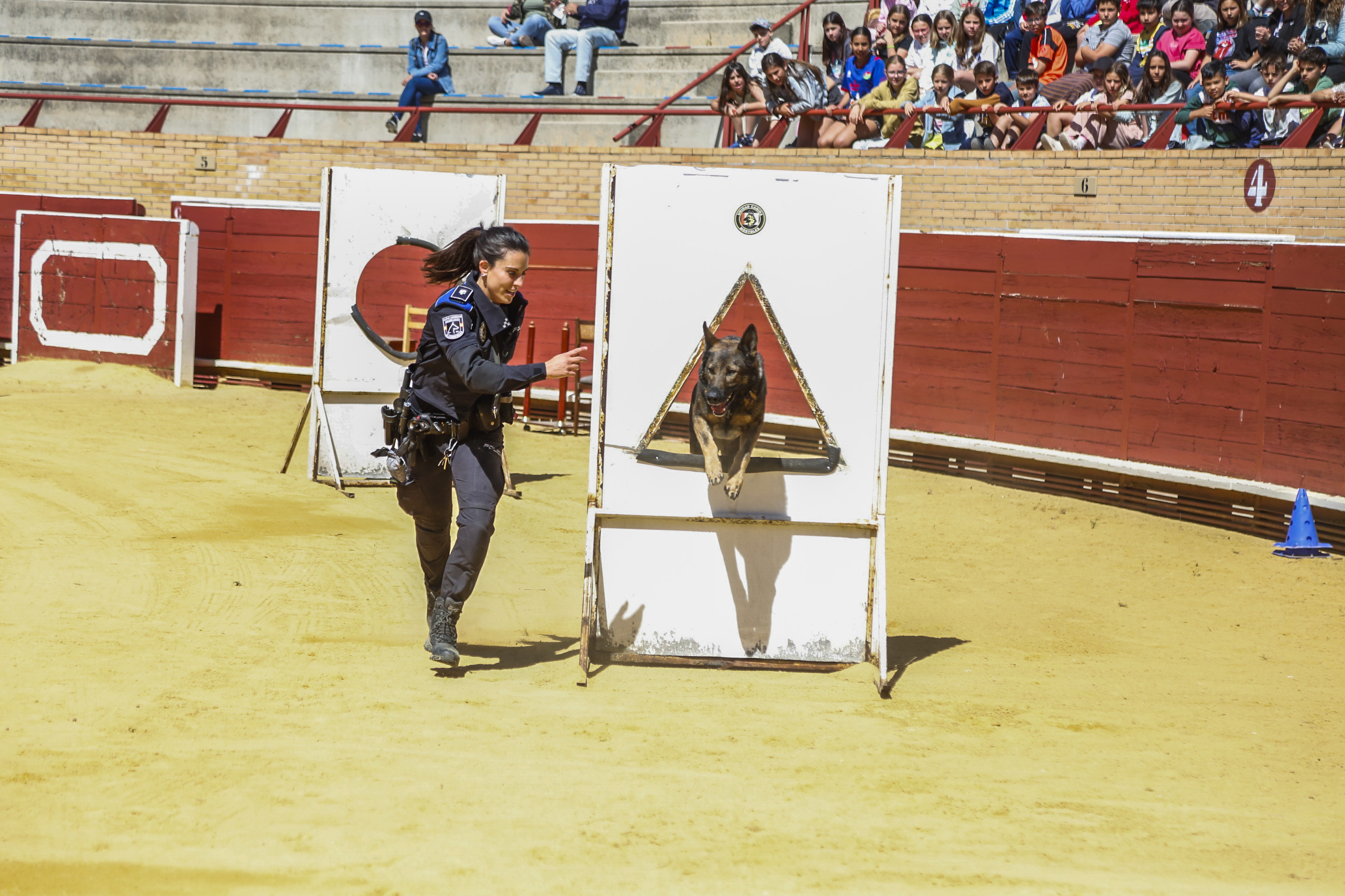 La jornada de hoy, 23 de mayo, ha acogido, de 10:00 h a 12:00 h, en la plaza de toros una exhibición de los servicios de Policía Municipal y una muestra de los medios móviles, además de la final del campeonato de Guías caninos policiales y militares, que ha celebrado la fase clasificatoria en los días previos, a puerta cerrada.