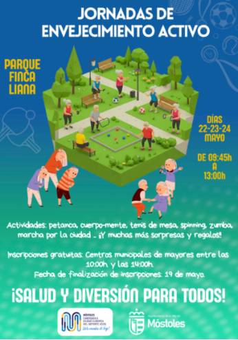 El Ayuntamiento de Móstoles organiza unas jornadas para mayores con el objetivo de promover el envejecimiento activo de una forma entretenida, saludable y divertida, que tendrán lugar los días 22, 23 y 24 de mayo.