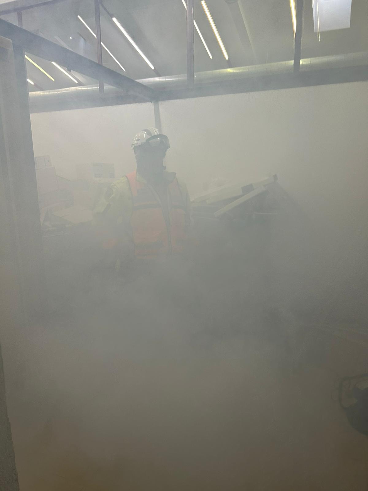 El simulacro, coordinado desde el Servicio de Prevención del Ayuntamiento, se centró en un escenario realista de fuego, situado en una de las plantas del interior del edificio con el fin de medir la capacidad de reacción y coordinación de todos los equipos de Emergencia.