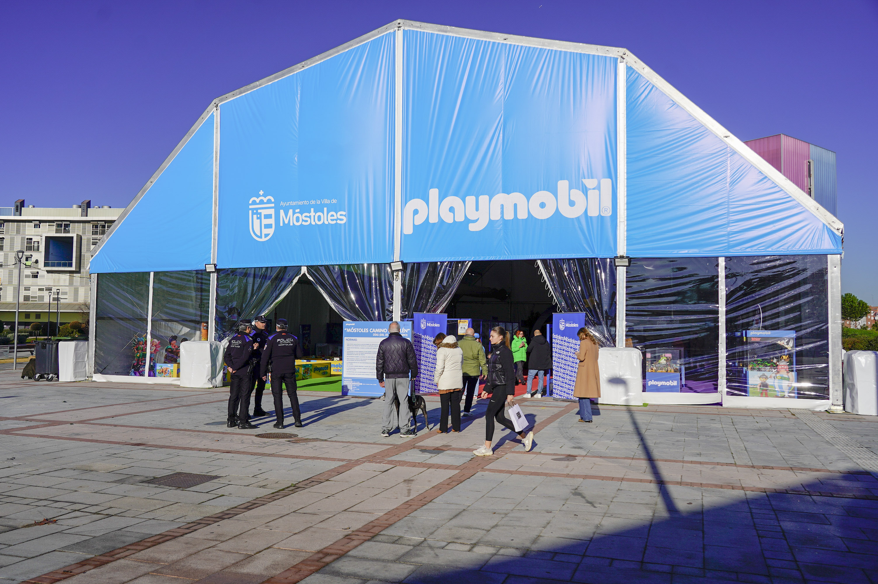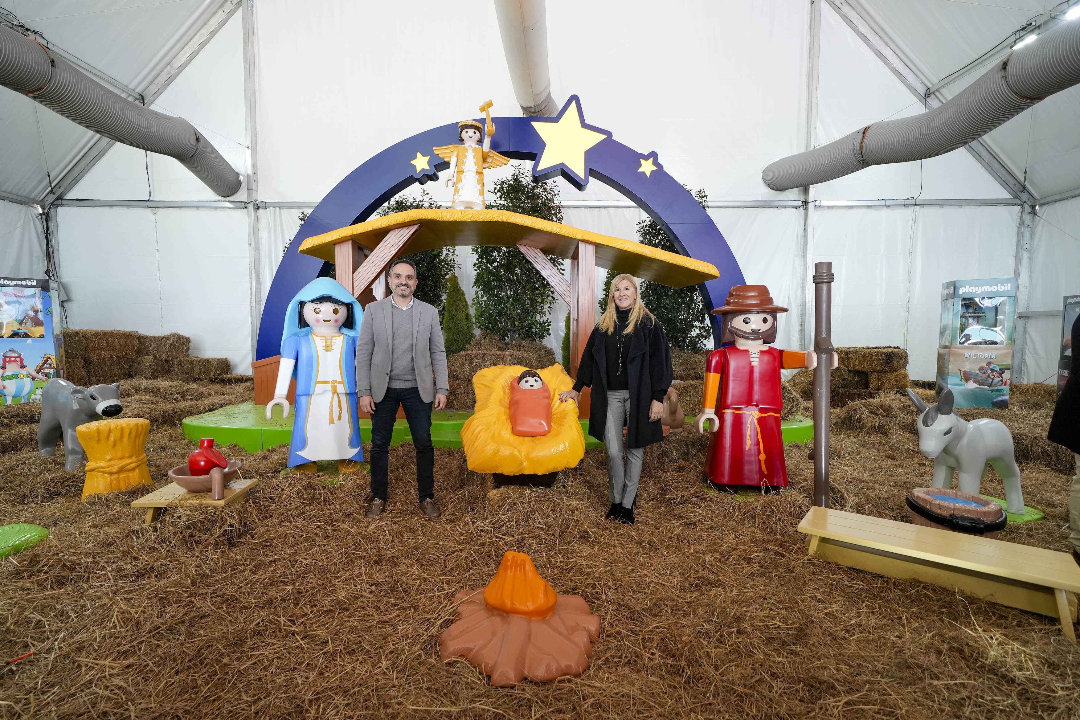 Para acoger este Belén Gigante de Playmobil, el primero oficial en España, se ha instalado una carpa de 700 m2, en la Plaza de las Constelaciones (PAU-4), que va a contar con estas singulares figuras de juguete de motivos navideños a escala natural, como San José o la Virgen María, de más de metro y medio de alto.