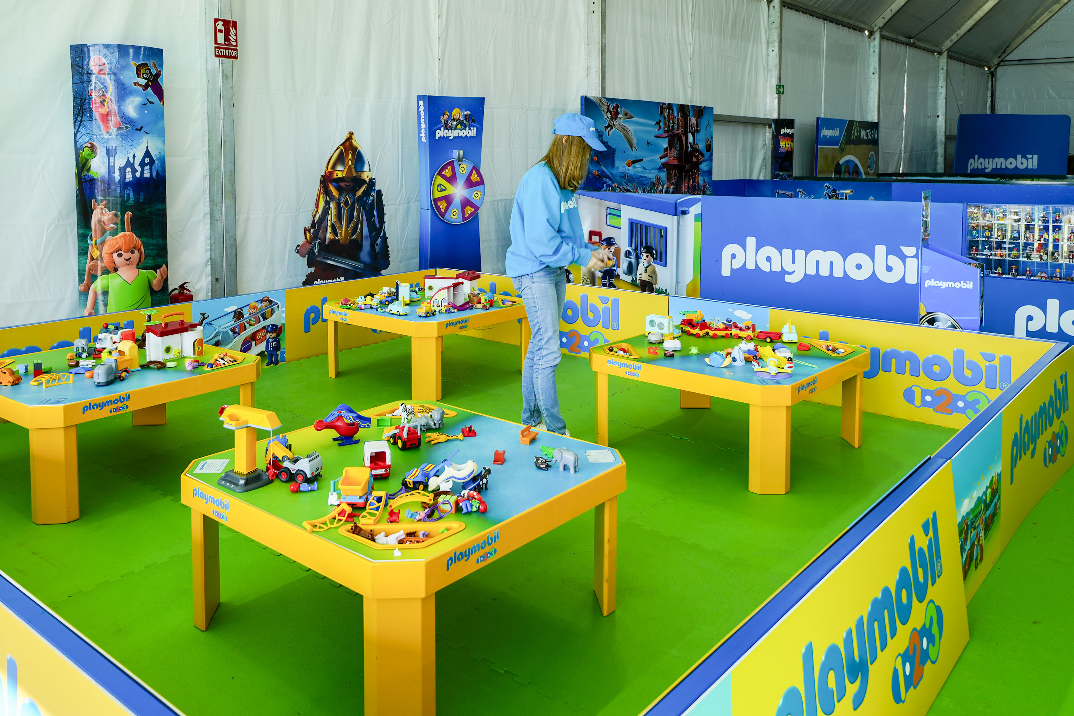 La carpa está dividida en distintas zonas que albergan, además, ocho figuras Playmobil tamaño XXL, tres zonas de juego para niños de más de 4 años con diferentes licencias y dos zonas de juego para menos de 3 años con Playmobil 1 2 3. A este Belén Gigante le acompañará un segundo Belén con más de 500 figuras de tamaño estándar que recreará un portal con marcha romana incluida hasta el castillo, que ocupará una superficie aproximada de 7x2 metros.