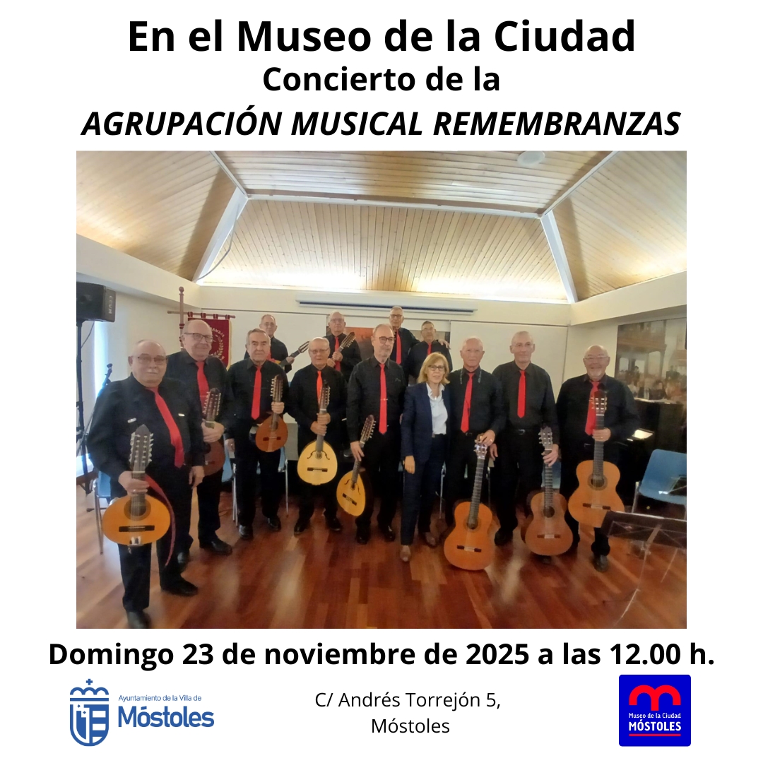 La música, también tendrá protagonismo el domingo 23, en el Museo de la Ciudad, a las 12:00 h, con el "Concierto de la Agrupación Musical Remembranzas". Esta vez se podrá disfrutar de música popular y tradicional, al son de boleros, pasodobles, zarzuelas, pasacalles y otros clásicos para recordar y disfrutar desde el corazón. La entrada es gratuita previa retirada de invitaciones en el propio centro a partir del martes 18 de noviembre.