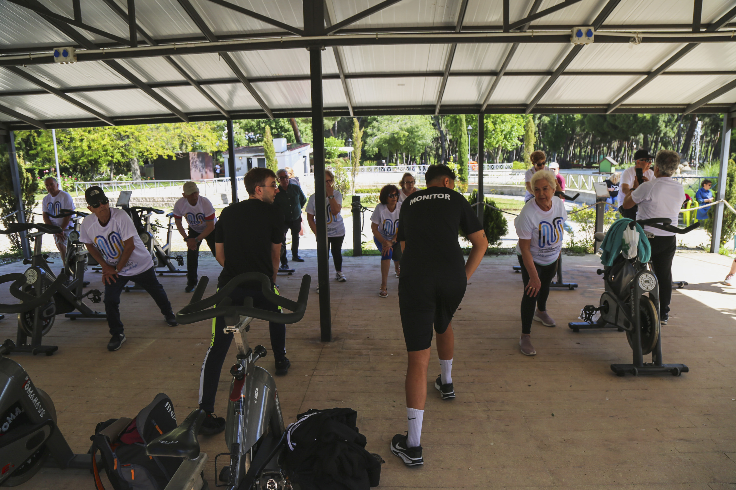 La jornada de hoy ha congregado a más de 250 participantes, que se han inscrito previamente en los Centros Municipales de Mayores y centros deportivos, y que han participado en un torneo de petanca, organizado por la Asociación Julumaca, han practicado técnicas de yoga, pilates y tai-chi favorecedoras para cuerpo y mente, y han realizado indoor bike, sobre una bicicleta estática, bajo una estructura a la sombra.