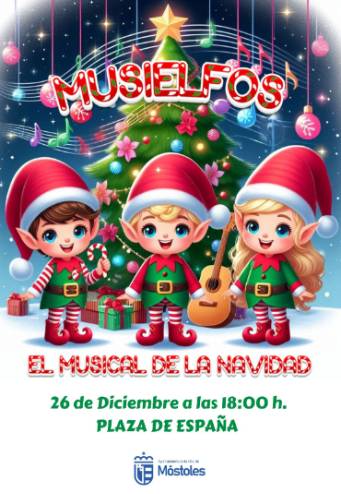 Hoy, jueves 26 de diciembre, llega a Móstoles "Musielfos: el musical de la Navidad". La Plaza de España se llenará de música y diversión, a partir de las 18:00 h, para el disfrute de los más pequeños de la casa.