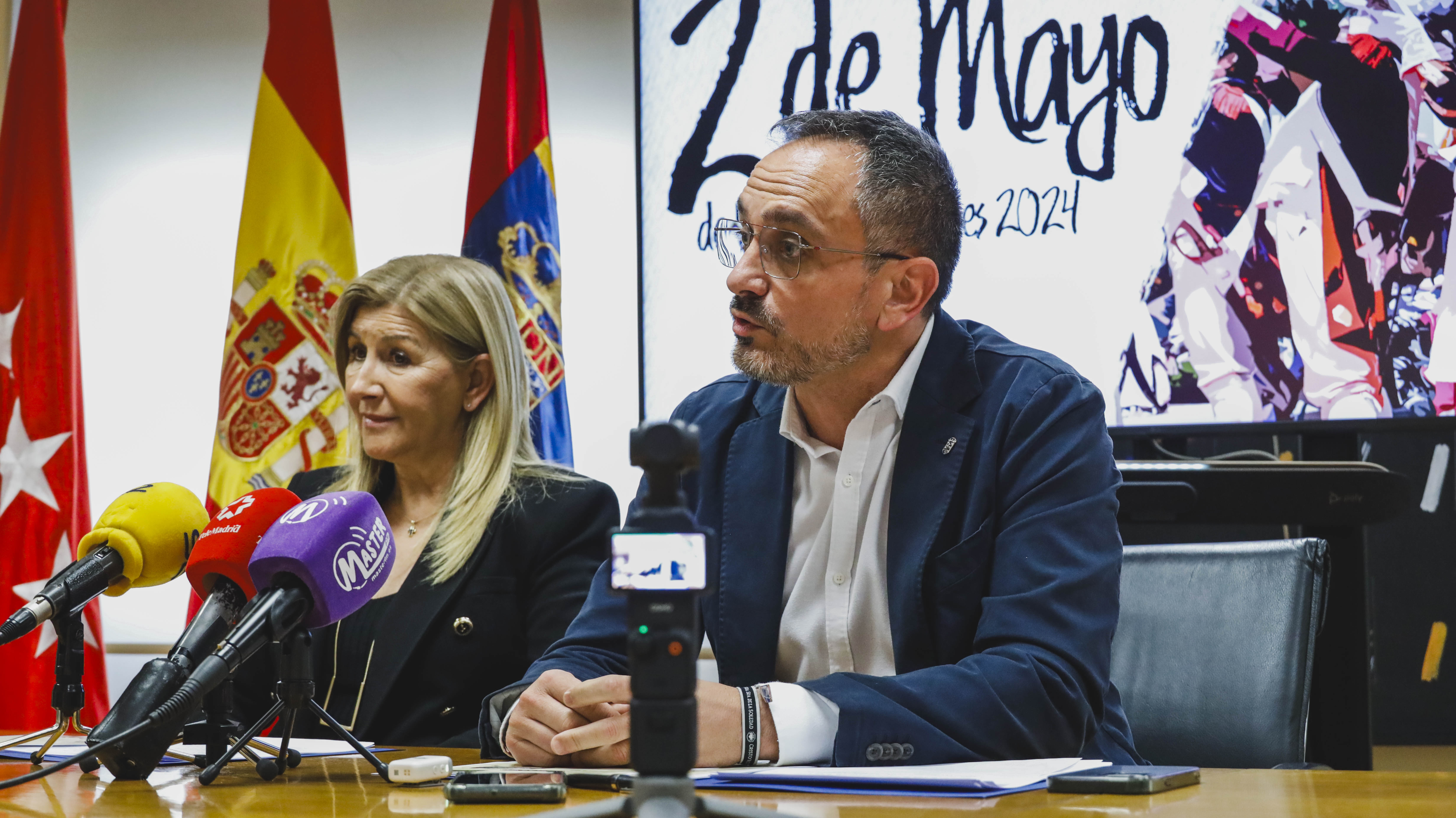 El alcalde de Móstoles, Manuel Bautista, acompañado de la concejal de Educación y Festejos, Cristina Molina, ha presentado esta mañana el programa de las fiestas, que se desarrollará del 25 de abril al 4 de mayo.