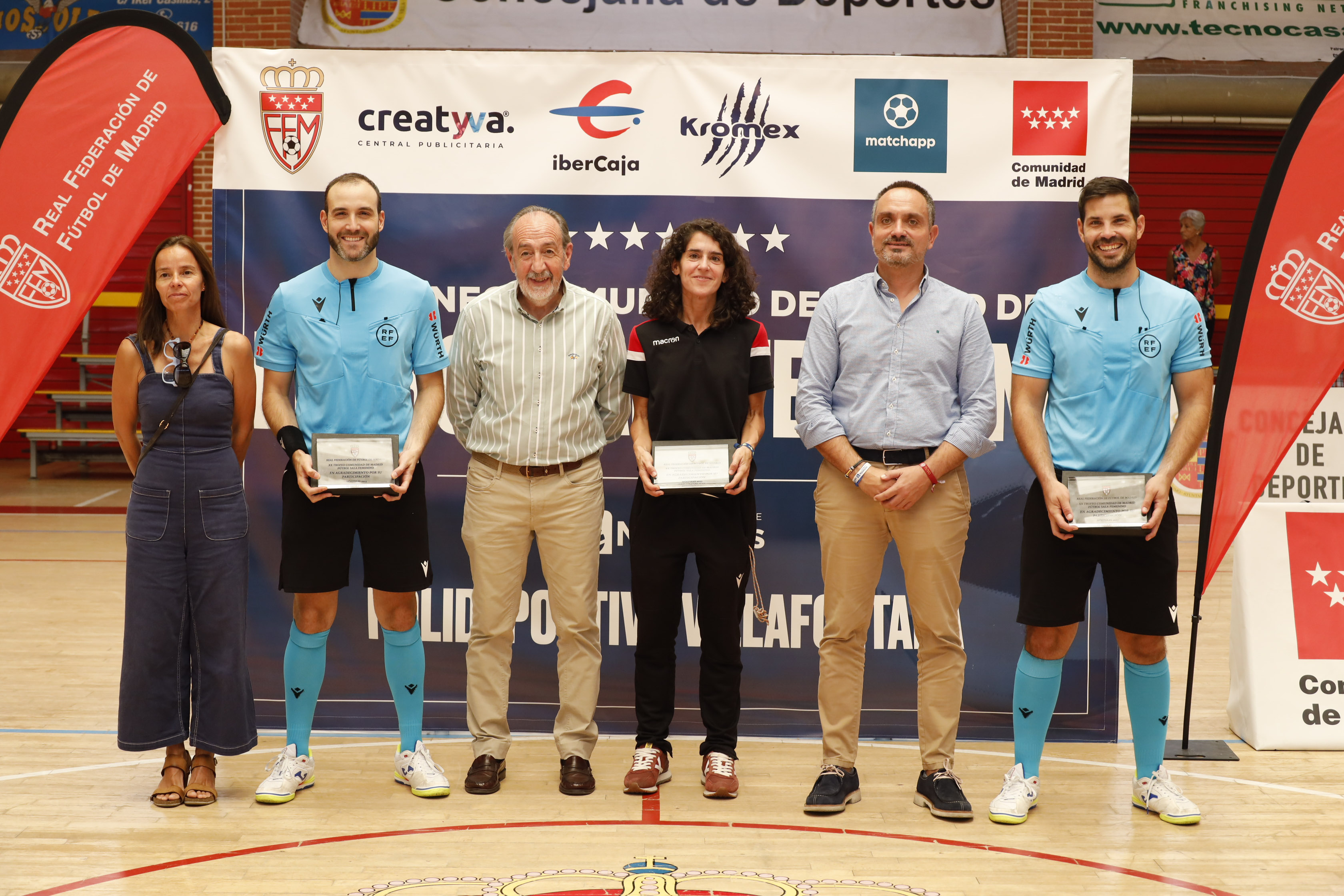 El Alcalde de Móstoles, Manuel Bautista, acompañado del Presidente de la Real Federación de Fútbol de Madrid, Francisco Díez, y la subdirectora de programas de la Dirección General de Deportes de la CAM, Virginia Blázquez, asistió a la entrega de trofeos.