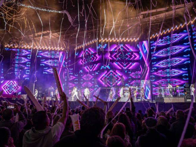 - El Arrebato y Las Nancys Rubias, en el escenario de las fuentes, y la orquesta París de Noia, en la zona de las carpas, congregaron a miles de personas en parque Finca Liana, una iniciativa novedosa del Ayuntamiento de Móstoles que ha organizado conciertos por primera vez en estas fiestas del 2 de Mayo.