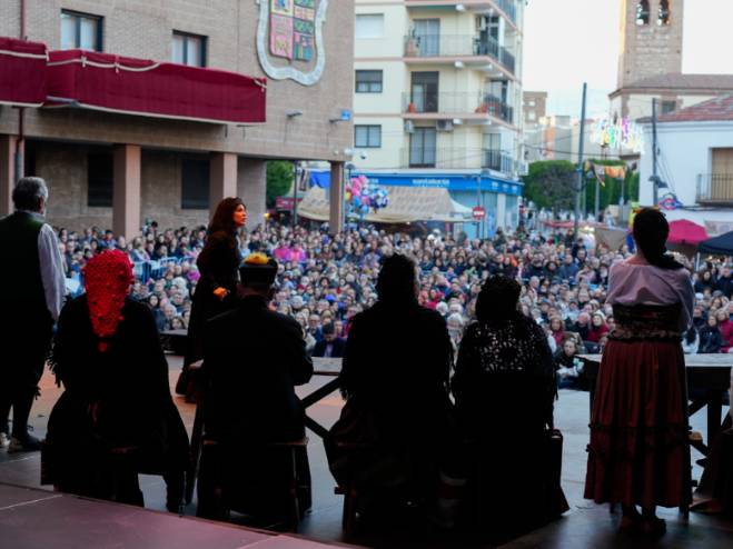 La compañía lírica La Arcadia Hispánica, afincada en Móstoles, con su espectáculo "Zarzuela de zarzuelas y el 2 de mayo en Móstoles", en la Plaza de España, puso el broche final a estas fiestas con esta puesta en escena del conocido como género chico.