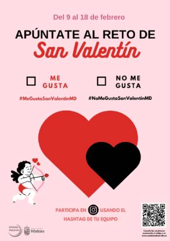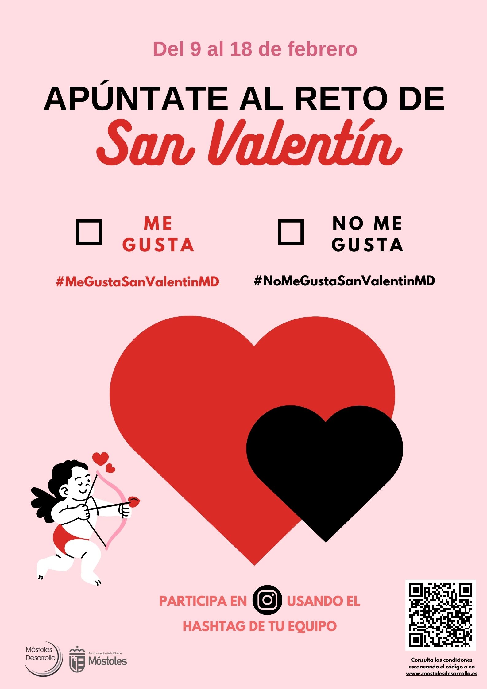 La campaña "Reto de San Valentín", puesta en marcha por Móstoles Desarrollo, del 9 al 18 de febrero, propone a los negocios de Móstoles participar en un concurso que supone un reto de decoración de sus establecimientos, en función de si les gusta esta festividad del amor o no. Los comercios de Móstoles podrán decidir si se adscriben al hashtag #MeGustaSanValentínMD, y decorar sus escaparates con motivos en rojo, como flores, corazones, cupidos…, o al hashtag #NoMeGustaSanValentínMD, y decorarlos en negro.