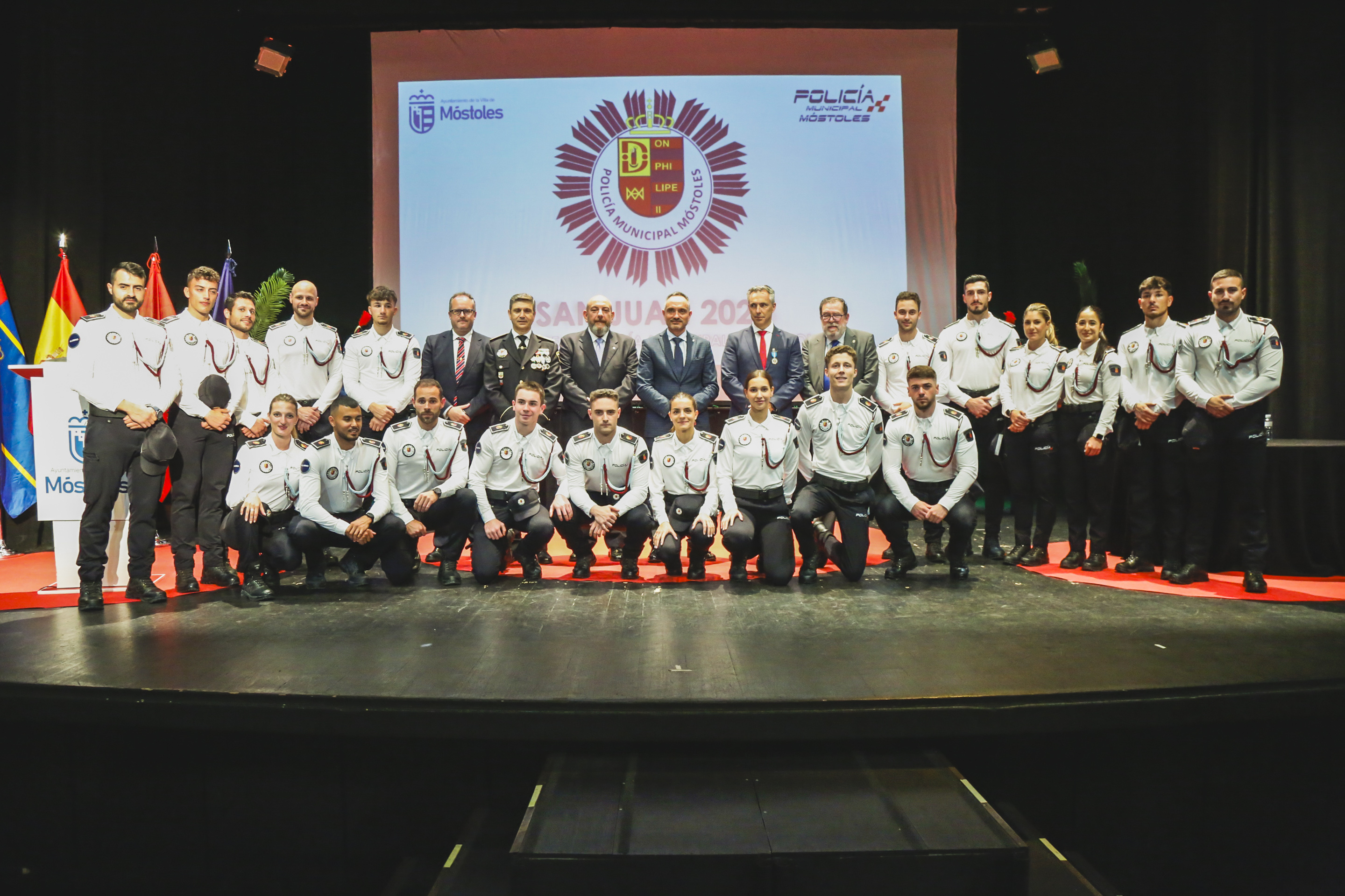 En el acto, se hizo un reconocimiento a un agente jubilado en 2024-2025, por sus 39 años de servicio; se entregaron 5 medallas de Permanencia de la Policía Municipal de Móstoles en su 2ª categoría, en reconocimiento a la prestación de servicios durante 15 años; se concedió diploma al Mérito Profesional a tres agentes; se entregó una Cruz al Mérito Profesional de la Policía Municipal Móstoles, en su 2ª Categoría; y se entregaron 13 medallas como distinción honorífica para reconocer actuaciones meritorias de carácter singular, que impliquen riesgo notorio, solidaridad excepcional o un nivel de profesionalidad extraordinario. Esta Medalla de la Policía Municipal de Móstoles también puede ser concedida a instituciones o personas que se distingan por su manifiesta y permanente colaboración con la labor de la Policía Municipal. Posteriormente, se rindió homenaje a los fallecidos en las Fuerzas y Cuerpos de Seguridad.