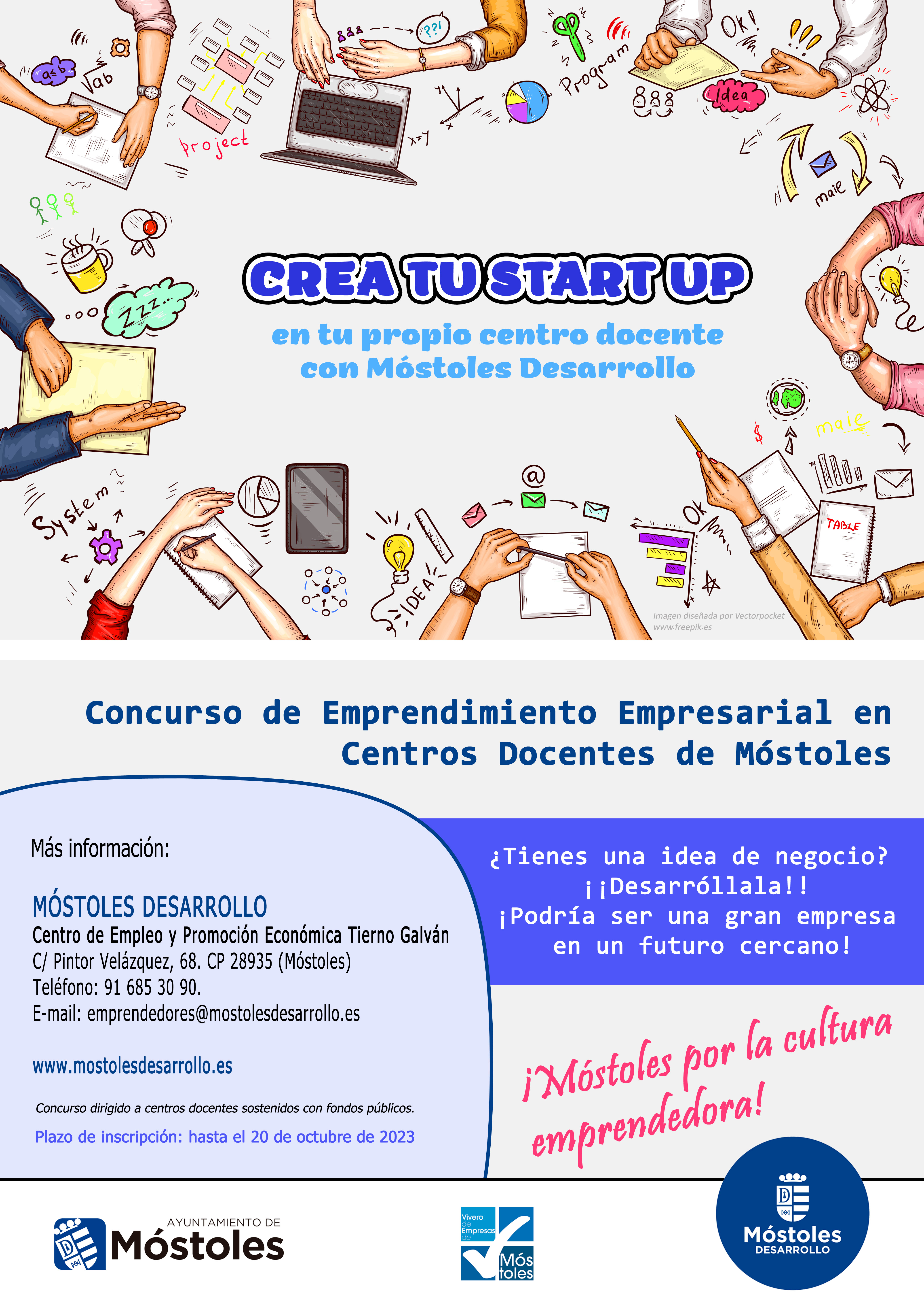 Con el fin de fomentar y difundir el espíritu emprendedor entre los estudiantes de la ciudad, el Ayuntamiento de Móstoles, a través de Móstoles Desarrollo, ha abierto la convocatoria del concurso de emprendimiento empresarial, "Crea tu startup", dirigido a alumnos matriculados en centros docentes de Móstoles sostenidos con fondos públicos en el curso escolar 2023-2024.