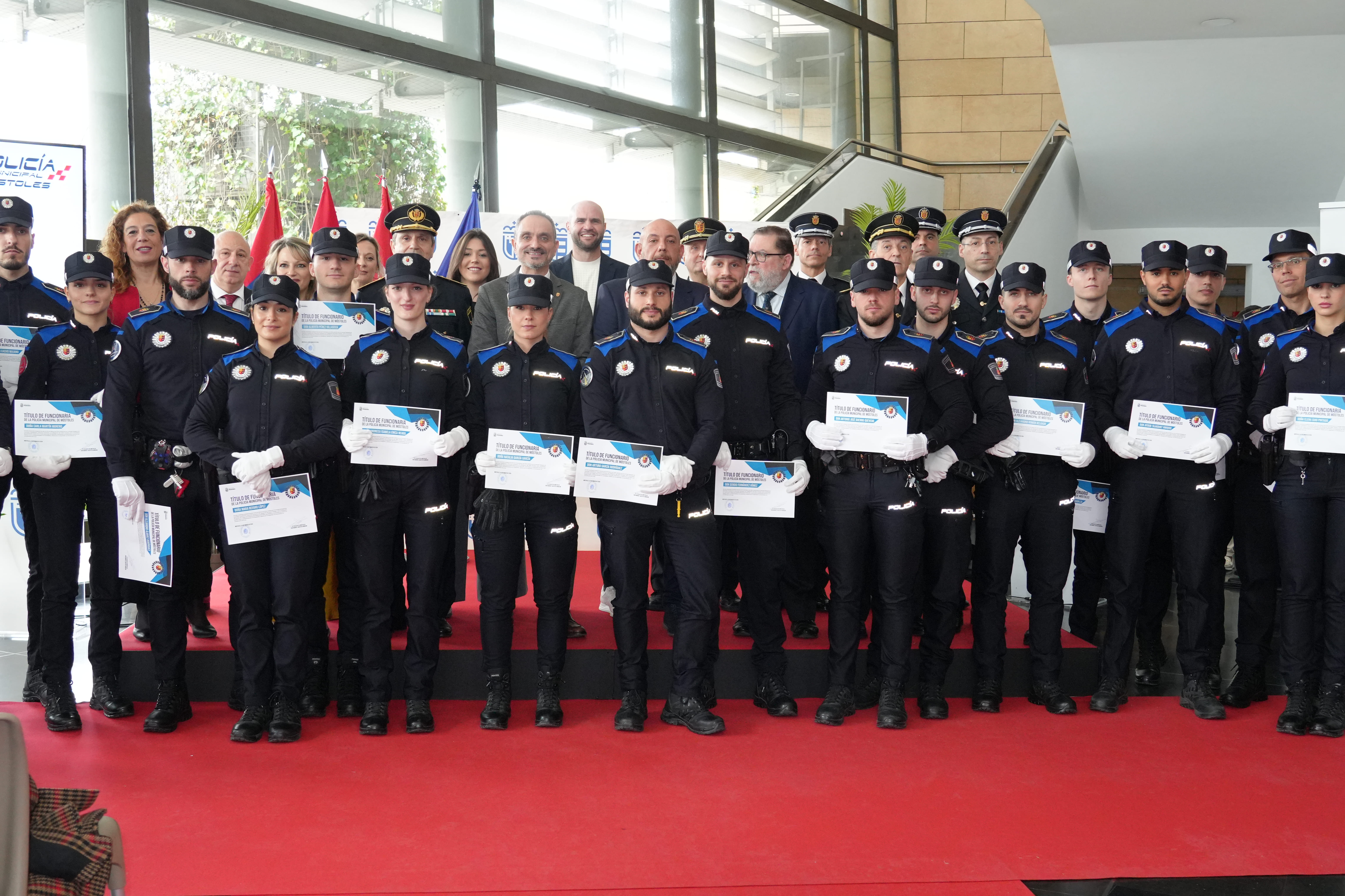 En el acto se ha proyectado un vídeo representativo del trabajo diario que realiza la Policía Municipal de Móstoles y se ha procedido a la entrega de diplomas a los agentes por parte de las autoridades.