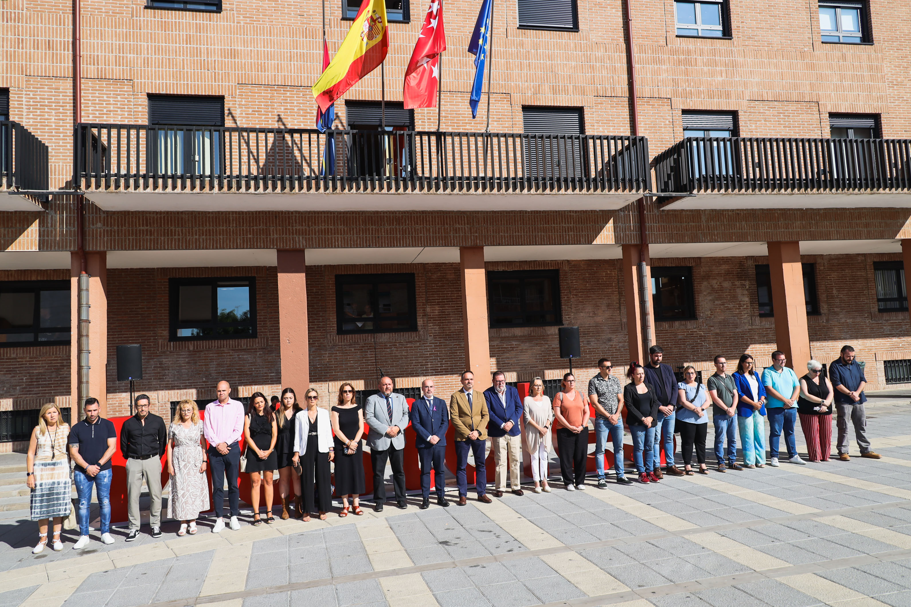 A las diez en punto, un centenar de personas congregadas en la Plaza del Ayuntamiento, acompañados por el Alcalde de Móstoles, Manuel Bautista, el Delegado del Gobierno, Francisco Martín, y representantes de todos los partidos de la Corporación Municipal han guardado un minuto de silencio como muestra de rechazo contra este nuevo asesinato y contra la violencia machista.