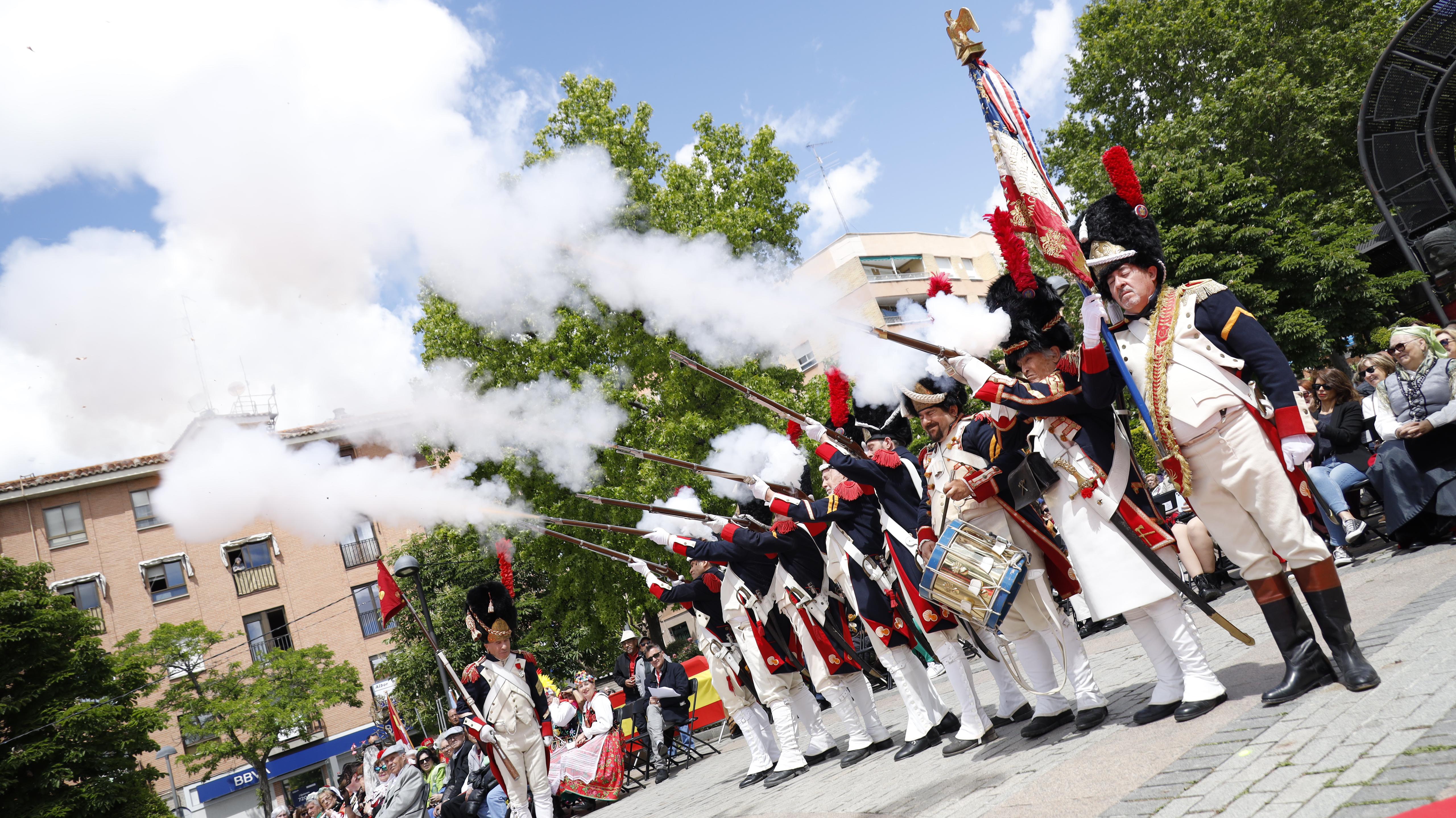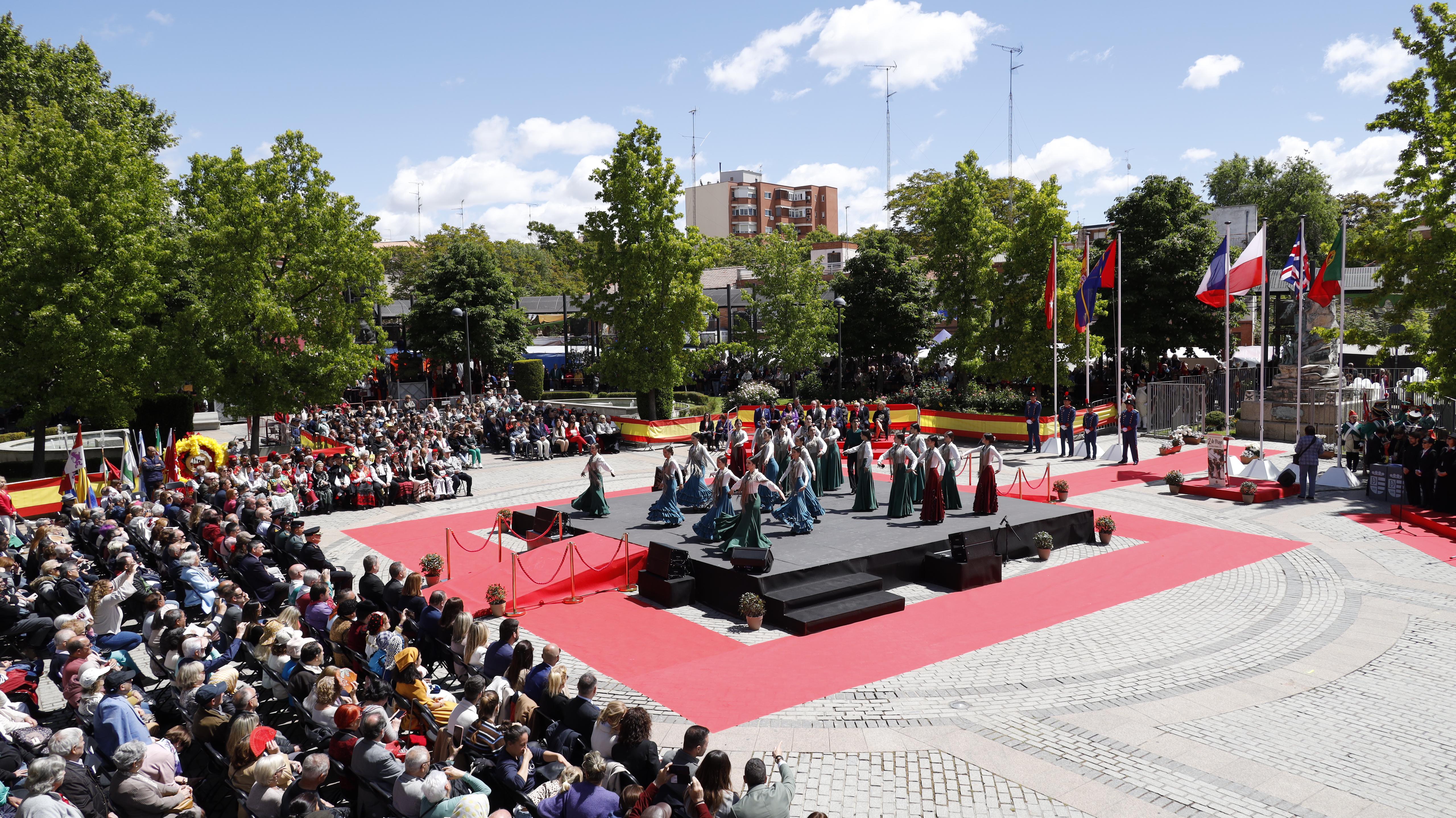 Durante el homenaje, coincidiendo con el Día de la Comunidad de Madrid, han desfilado las diferentes casas y centros regionales y colectivos de inmigrantes, las asociaciones histórico-culturales "Los desastres de la guerra" y "2 de mayo de Móstoles" han realizado sendas recreaciones y los alumnos de la Escuela de Danza Ciudad de Móstoles han interpretado en el escenario las obras de Manuel de Falla "Gitanerías" y "El sombrero de tres picos".