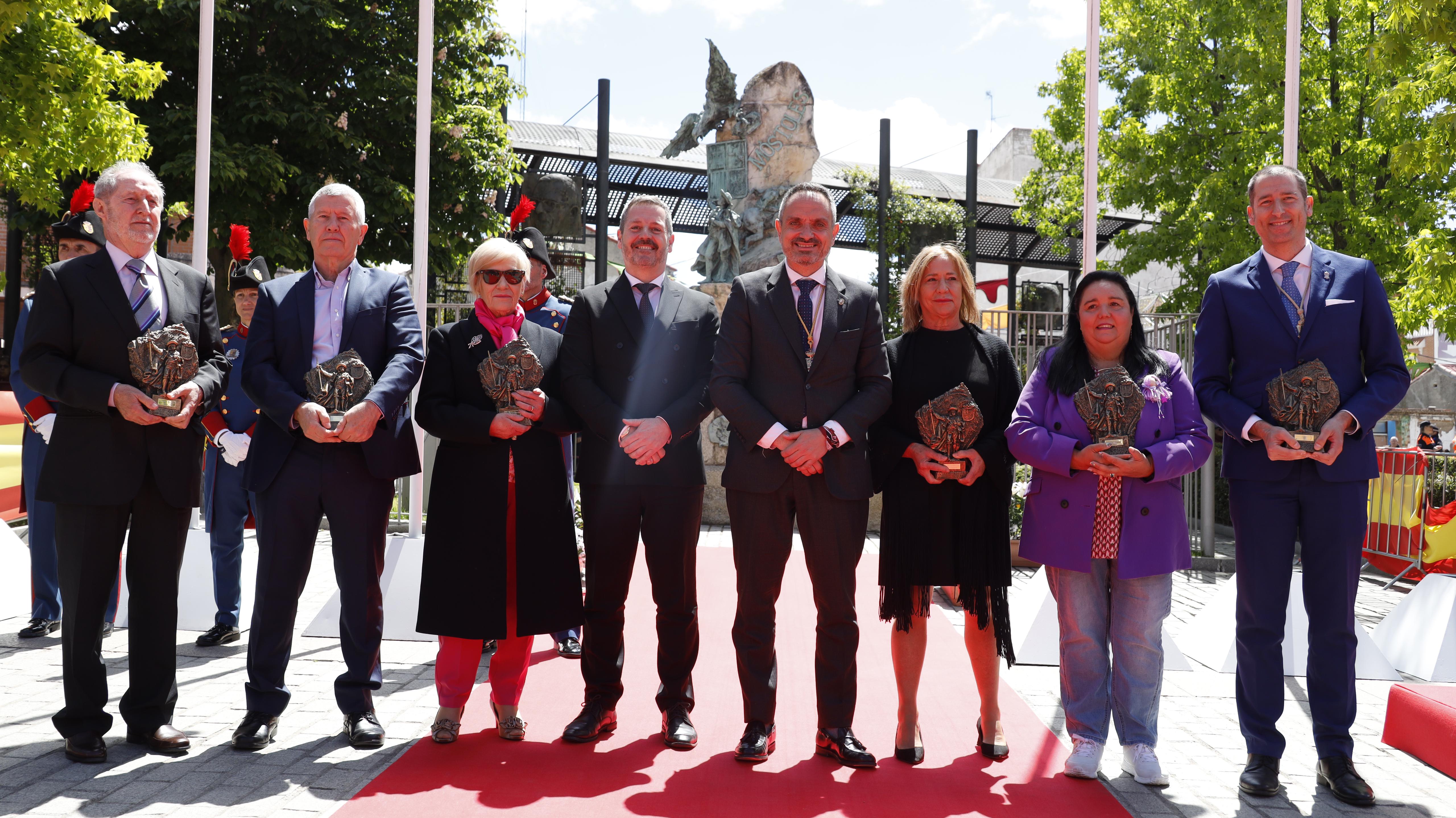 Tras el izado de banderas con los acordes del Himno Nacional, se han entregado los galardones de los Premios Mostoleños 2024. Este año, por sus valores cívicos y por ser un ejemplo en el desarrollo de buenas prácticas y de estímulo para el resto de la sociedad mostoleña han sido premiados Sara Zazo, responsable del programa "Vacaciones en Paz"; María del Pilar Madueño, dueña de la atracción infantil "Caballitos"; Ricardo Zamora, presidente de la asociación de vecinos El Soto; Alfredo Moral, presidente de la Asociación de Voluntarios Solidarios de Móstoles "Ningún niño sin juguetes"; la Asociación Solidaridad con nuestros niños y la Hermandad Nuestra Señora del Rocío.