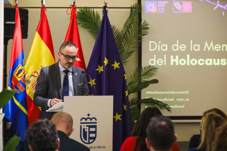 "Lamentamos aquellos terribles sucesos que nunca tenían que haber sucedido. Hoy rendimos este homenaje para no caer en el peligro del olvido. Los jóvenes, las nuevas generaciones, tienen que conocer lo que ocurrió. En Móstoles ratificamos nuestro compromiso por una convivencia pacífica y de lucha contra el antisemitismo. Condenamos cualquier forma de violencia, de odio, racismo o xenofobia", destacó el primer edil.