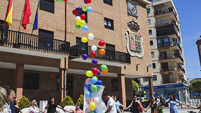 - El Alcalde de Móstoles, Manuel Bautista, ha asistido a la lectura del manifiesto y la suelta de globos que ha tenido lugar frente a la casa consistorial.