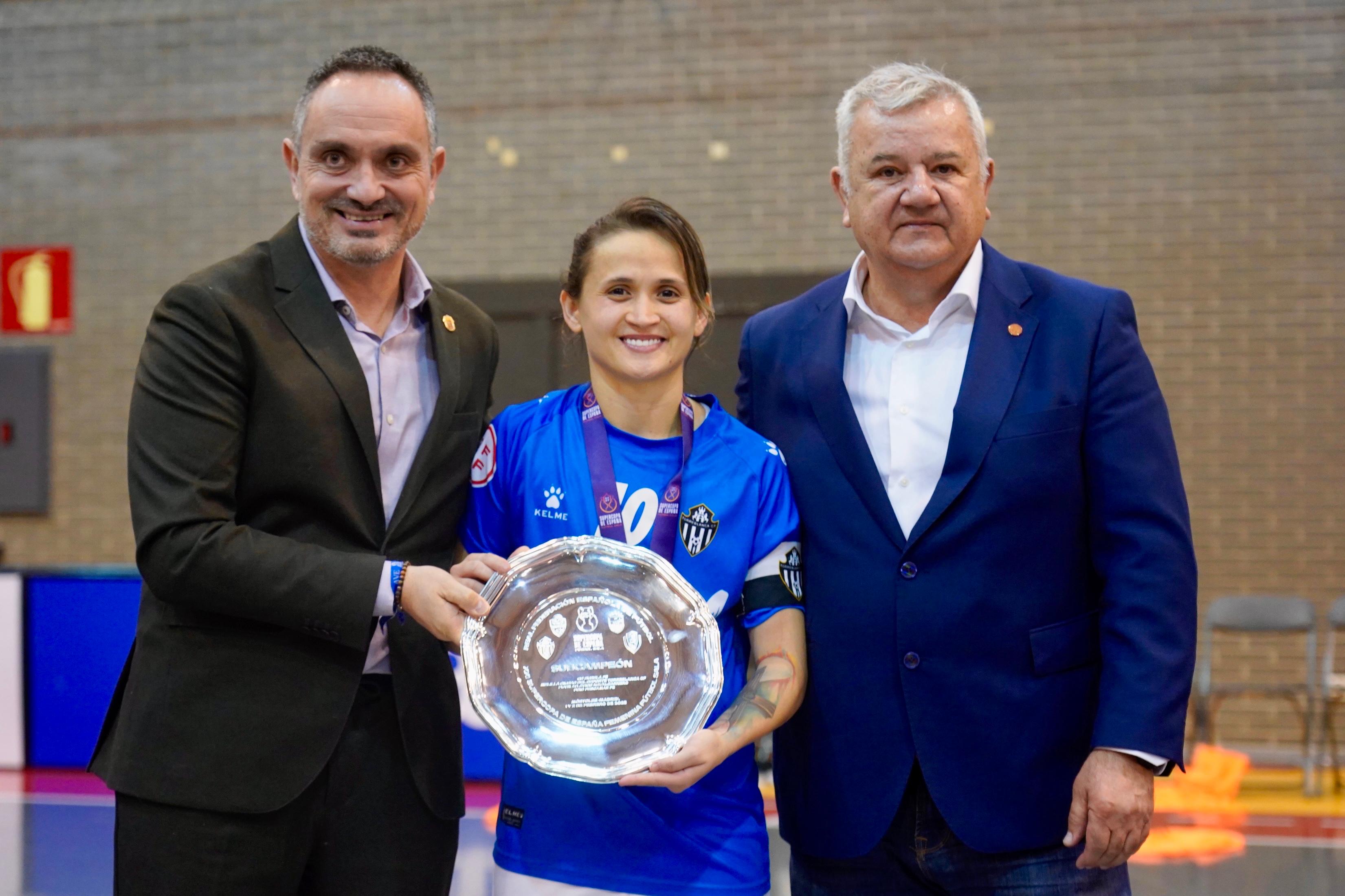 A la entrega del trofeo de campeonas a las jugadoras y cuerpo técnico de Futsi Navalcarnero, asistió el alcalde de Móstoles, Manuel Bautista, acompañado del presidente de la Real Federación Española de Fútbol, Rafael Louzán, y el presidente de la Real Federación de Fútbol de Madrid, Paco Díez.
