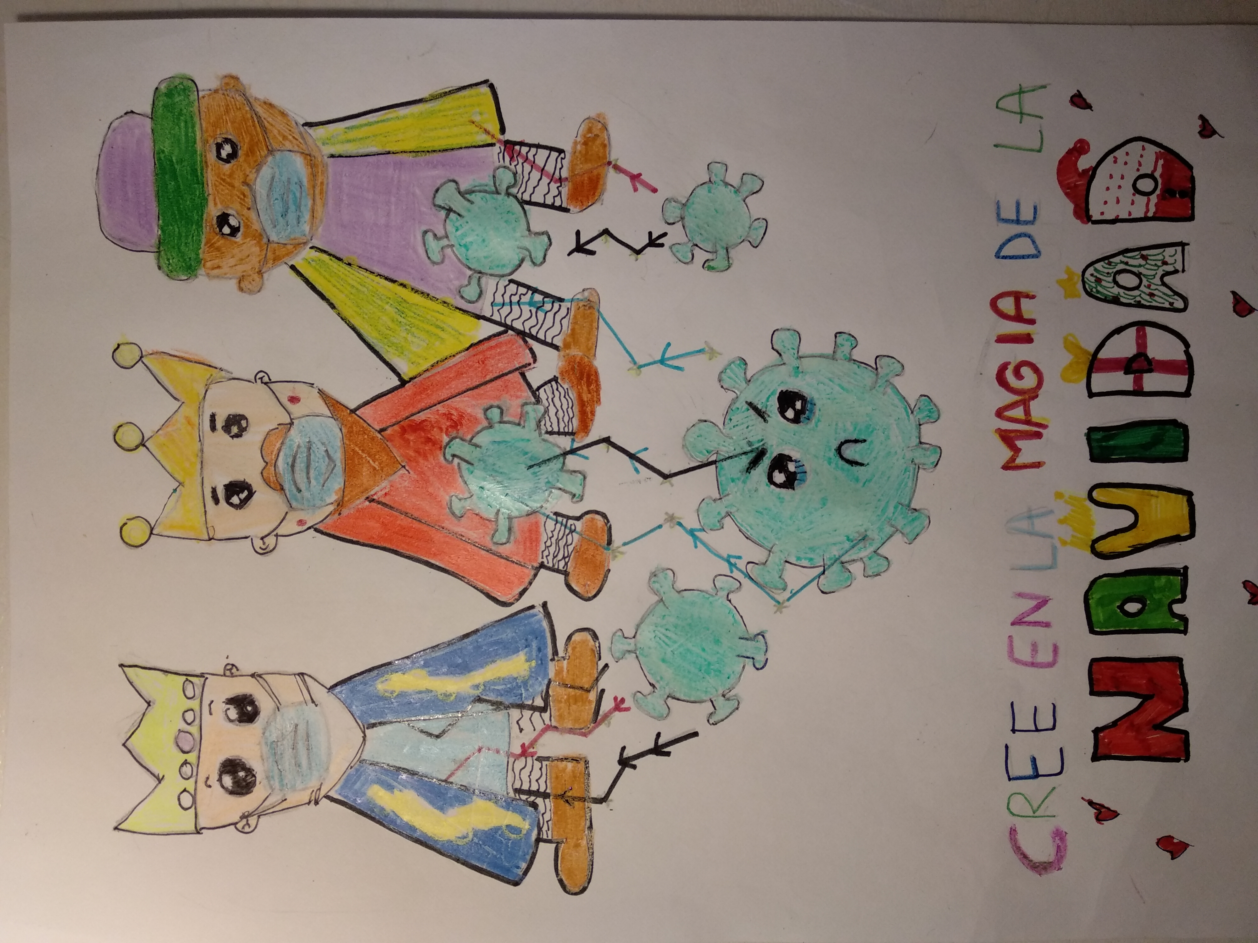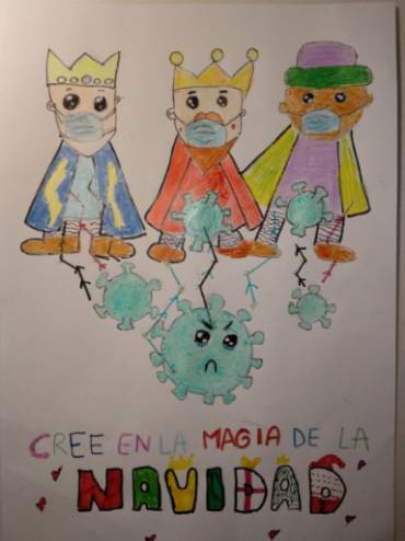 Por su parte, Vera Martín, ha sido la ganadora en la categoría de 8 a 11 años. En su composición también se ha destacado el mensaje centrado en el problema actual de la pandemia con la esperanza en que la Navidad y los Reyes Magos acaben con el virus. Los Reyes Magos llevan mascarillas como claro mensaje que apela a la responsabilidad y al cumplimiento de las normas.