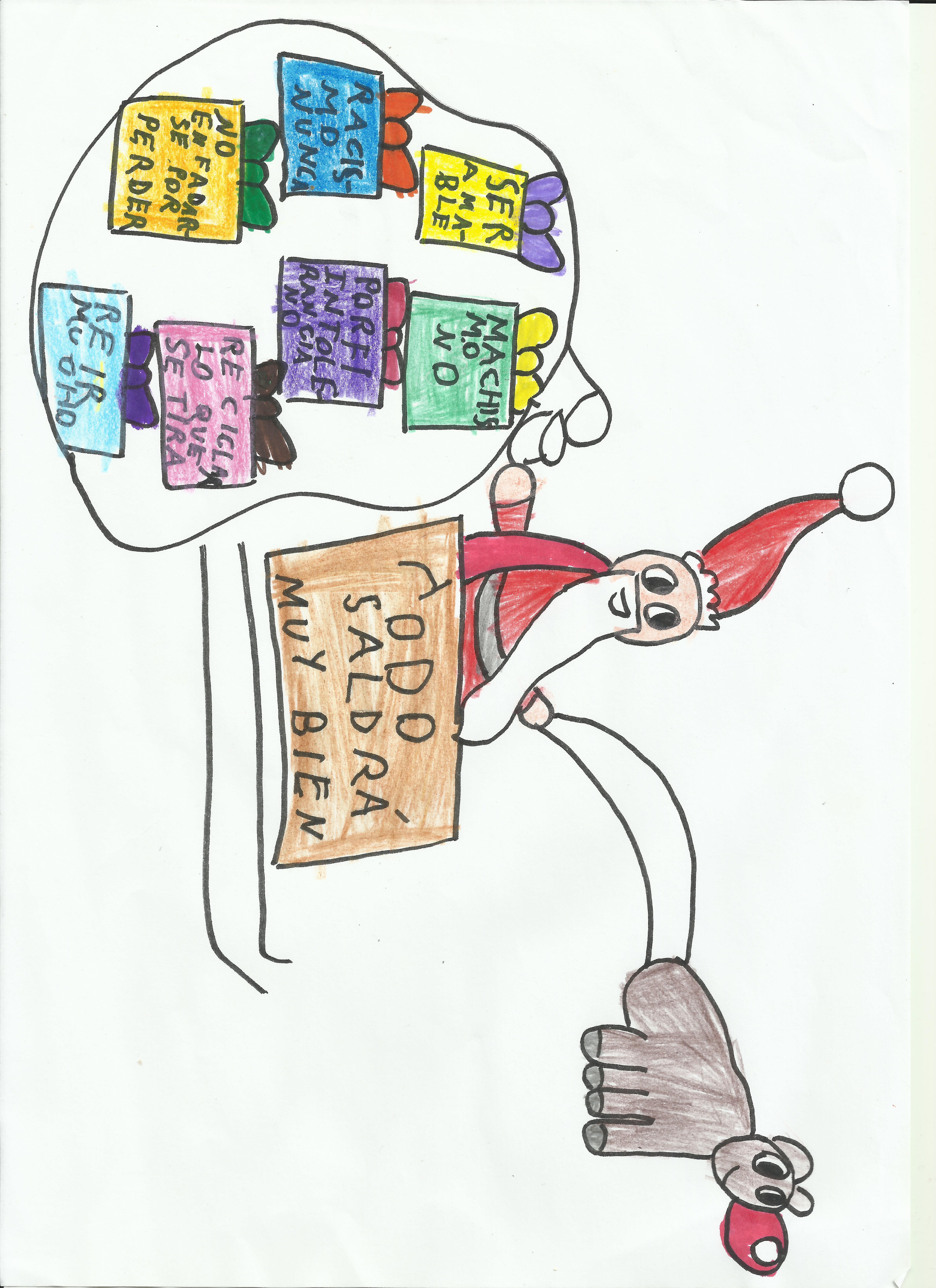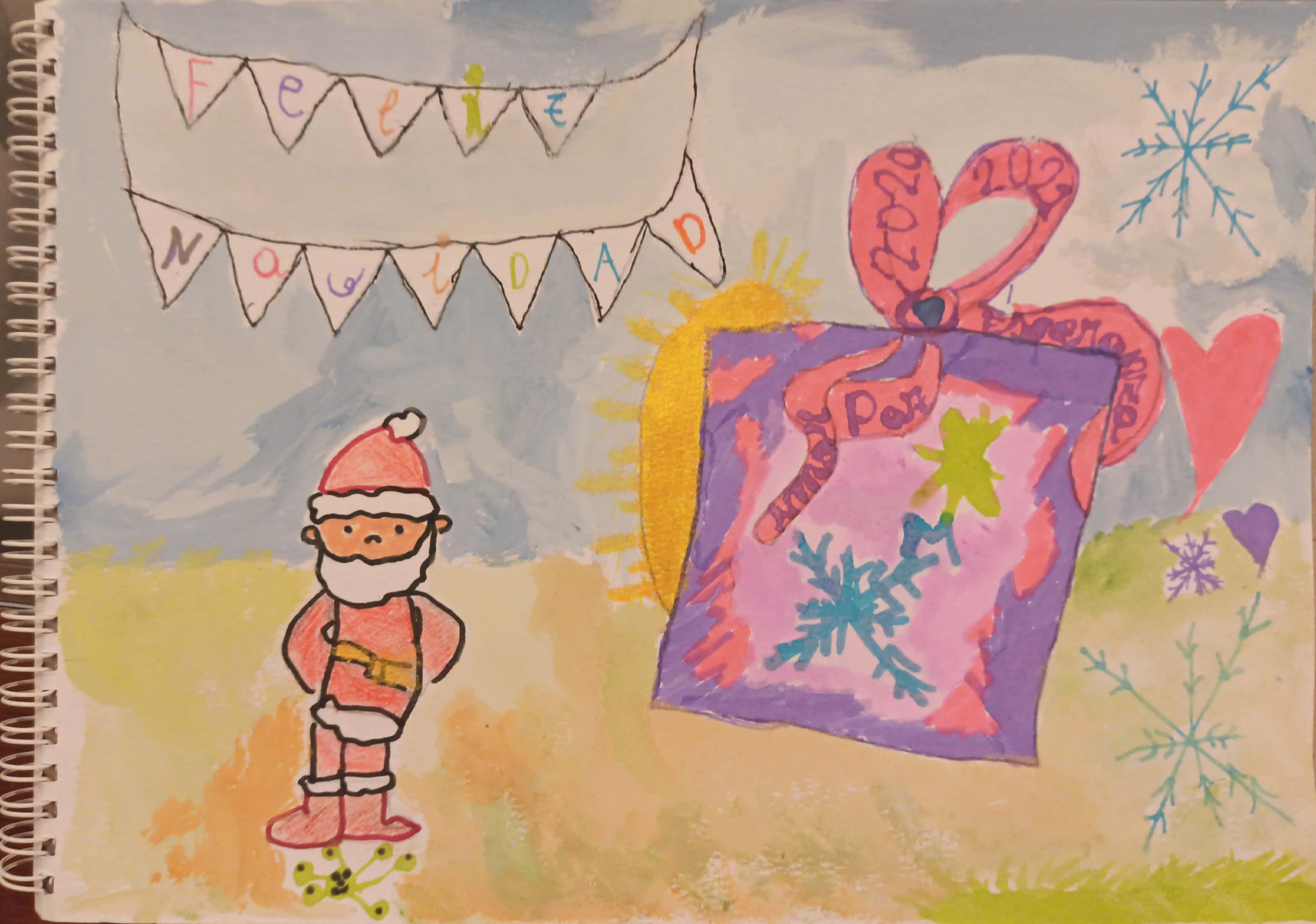 Sofía del Pilar Nieto ha sido la ganadora en la categoría de 6 a 7 años de edad. En su propuesta, el jurado ha destacado el mensaje que transmite su autora con el dibujo de un regalo con el que expresa valores como el amor, la esperanza y la paz. Asimismo, se ha valorado la originalidad en el color elegido y el empleo de diversos materiales como rotuladores, acuarelas y lápices de colores.