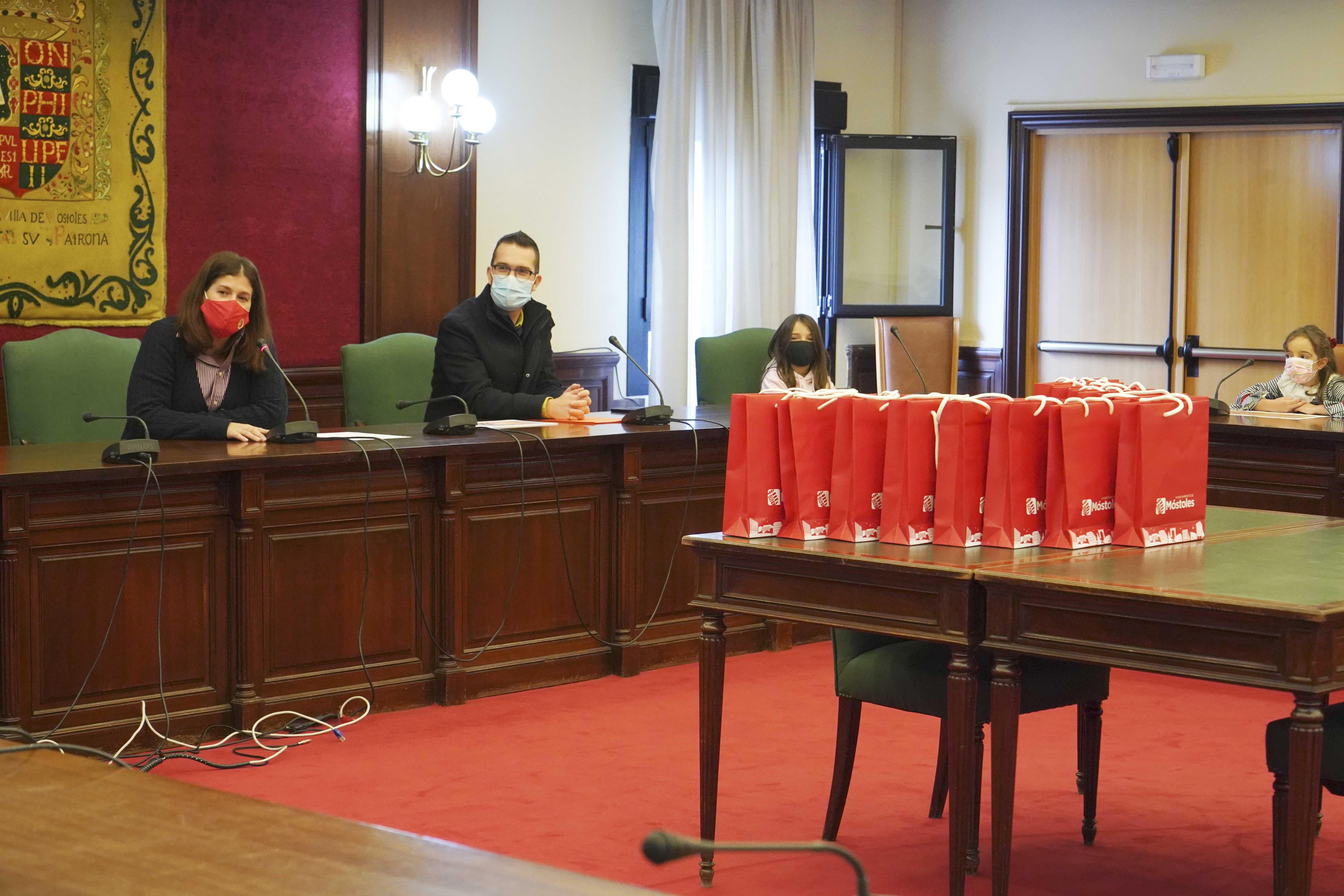 Las niñas Pilar Nieto y Vera Martín ganadoras del concurso de felicitaciones navideñas de Móstoles