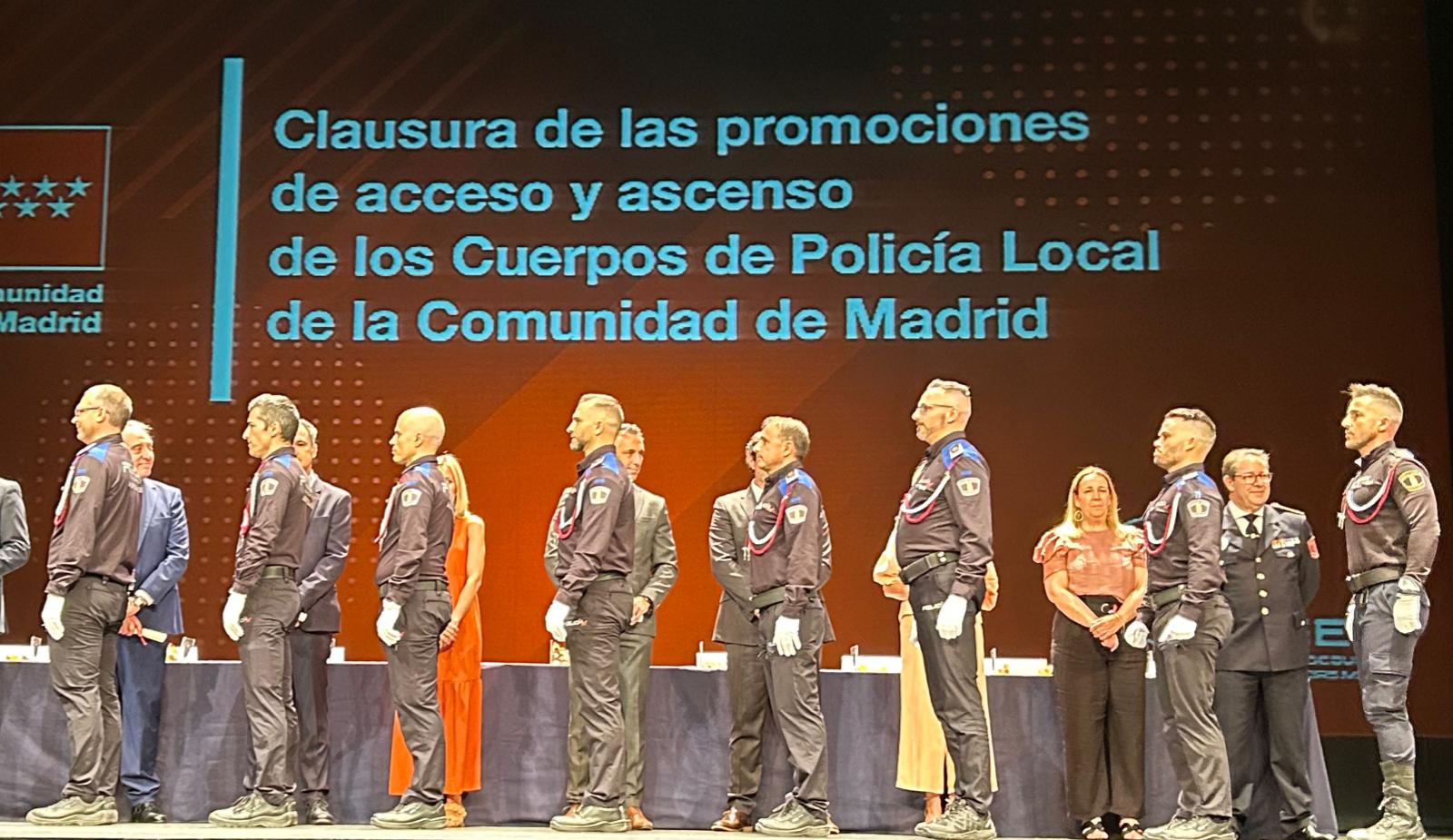 El Concejal de Seguridad, Emergencias, Movilidad y Medio Ambiente, Gabriel Monteserín, y el Jefe de Policía Municipal, Juan Manuel Arribas, asistieron ayer al acto de clausura de los cursos de acceso, ascenso y promoción interna de las distintas categorías profesionales que conforman las policías locales de la región, que estuvo presidido por el Consejero de Medio Ambiente, Agricultura e Interior, Carlos Novillo, y que se celebró en el Teatro Auditorio Ciudad de Alcobendas.